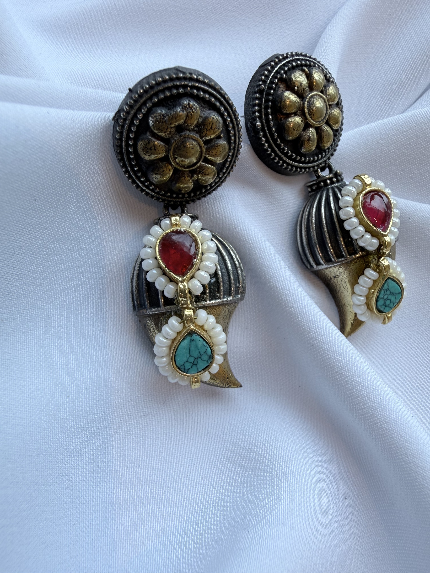 Oxidized silver Pachi Kundan replice ethnic earrings.