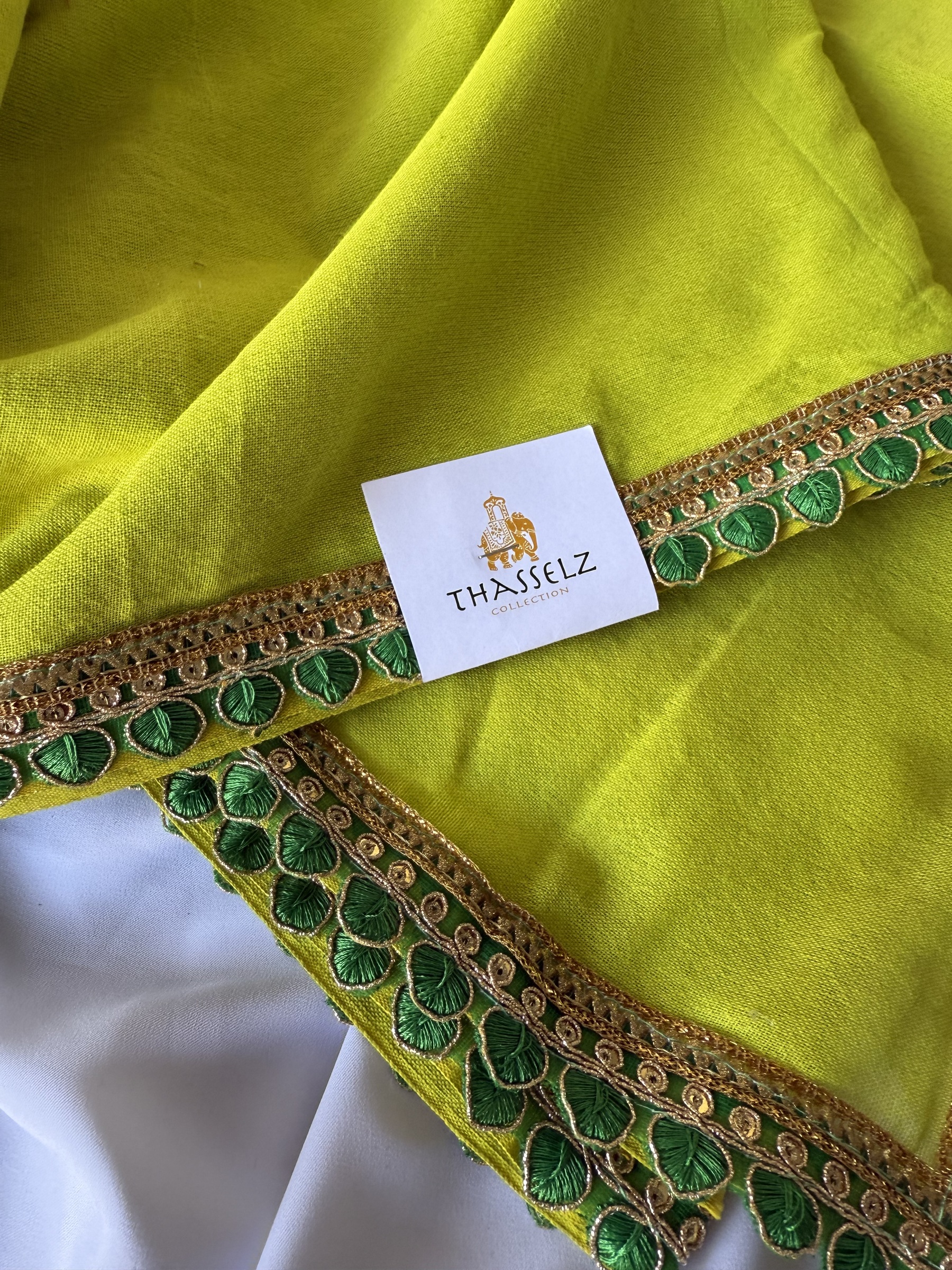 Mulmul cotton saree with contrast design border and comes with running colour blouse material & contrast colour pompoms on pallu.
