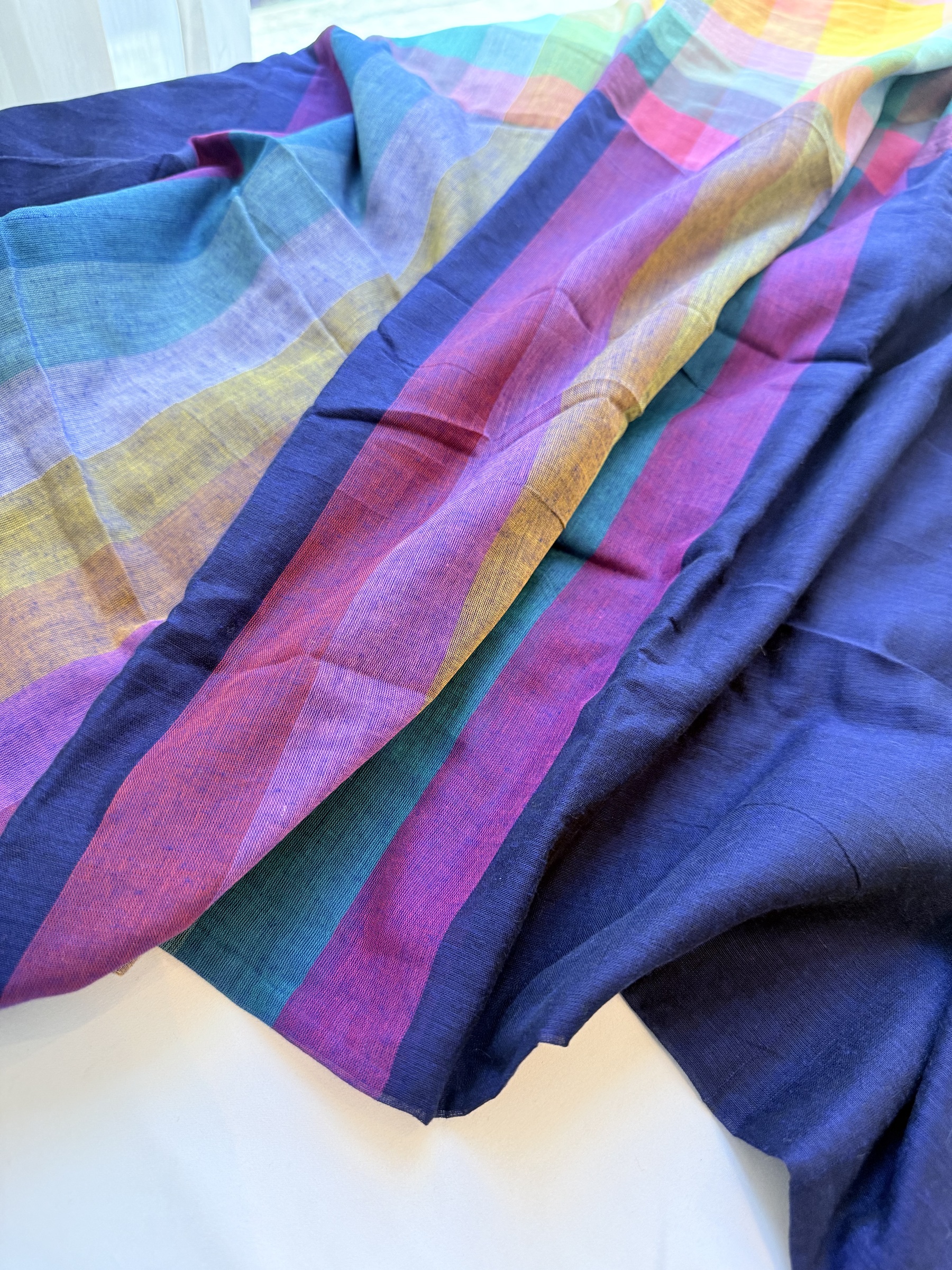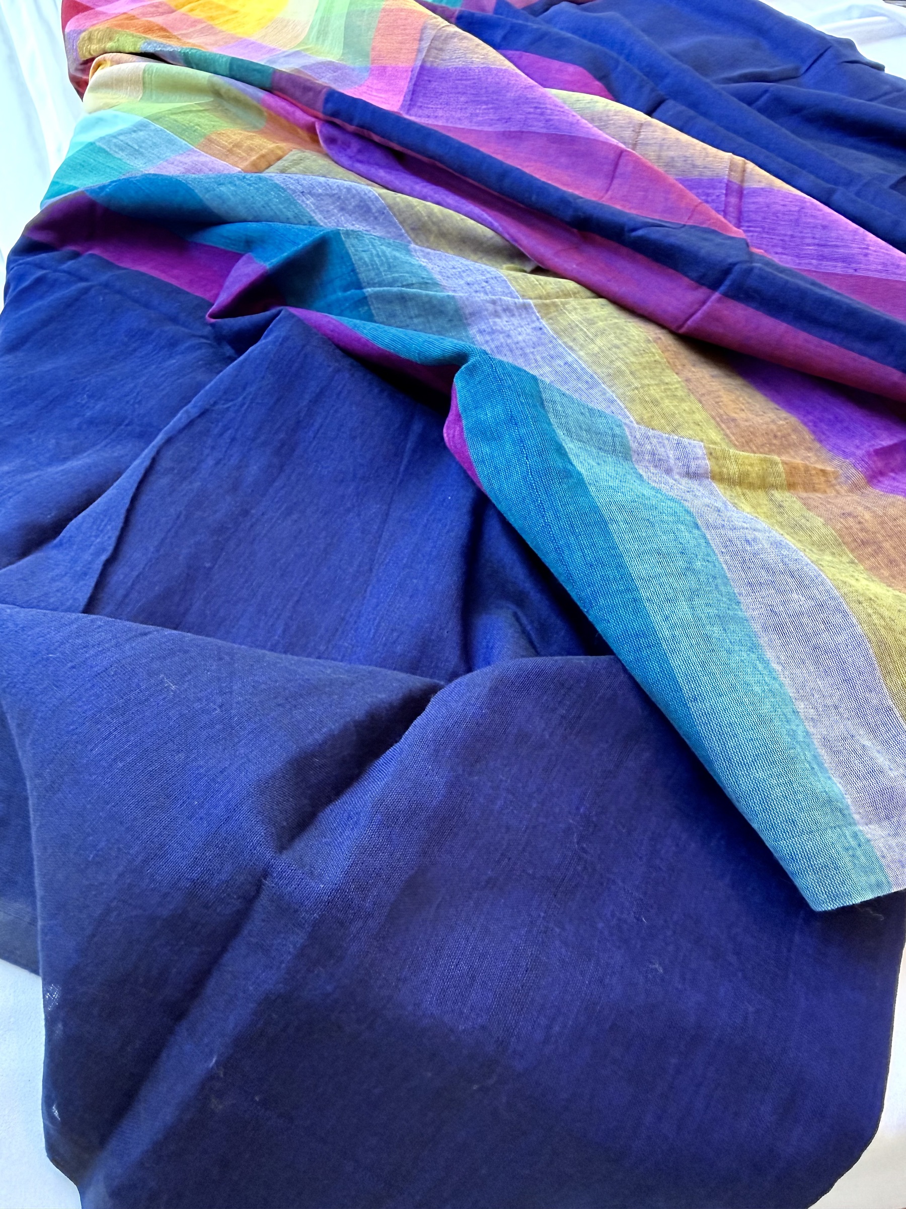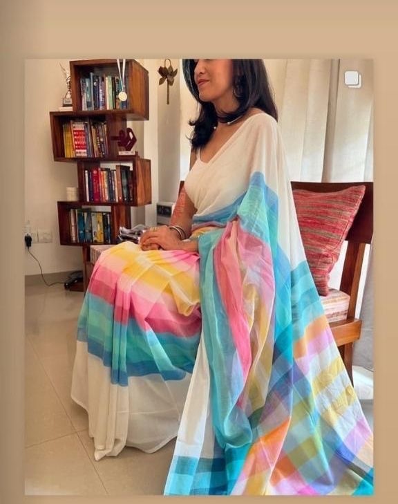 Multicolour Stripes Mulmul Cotton Saree