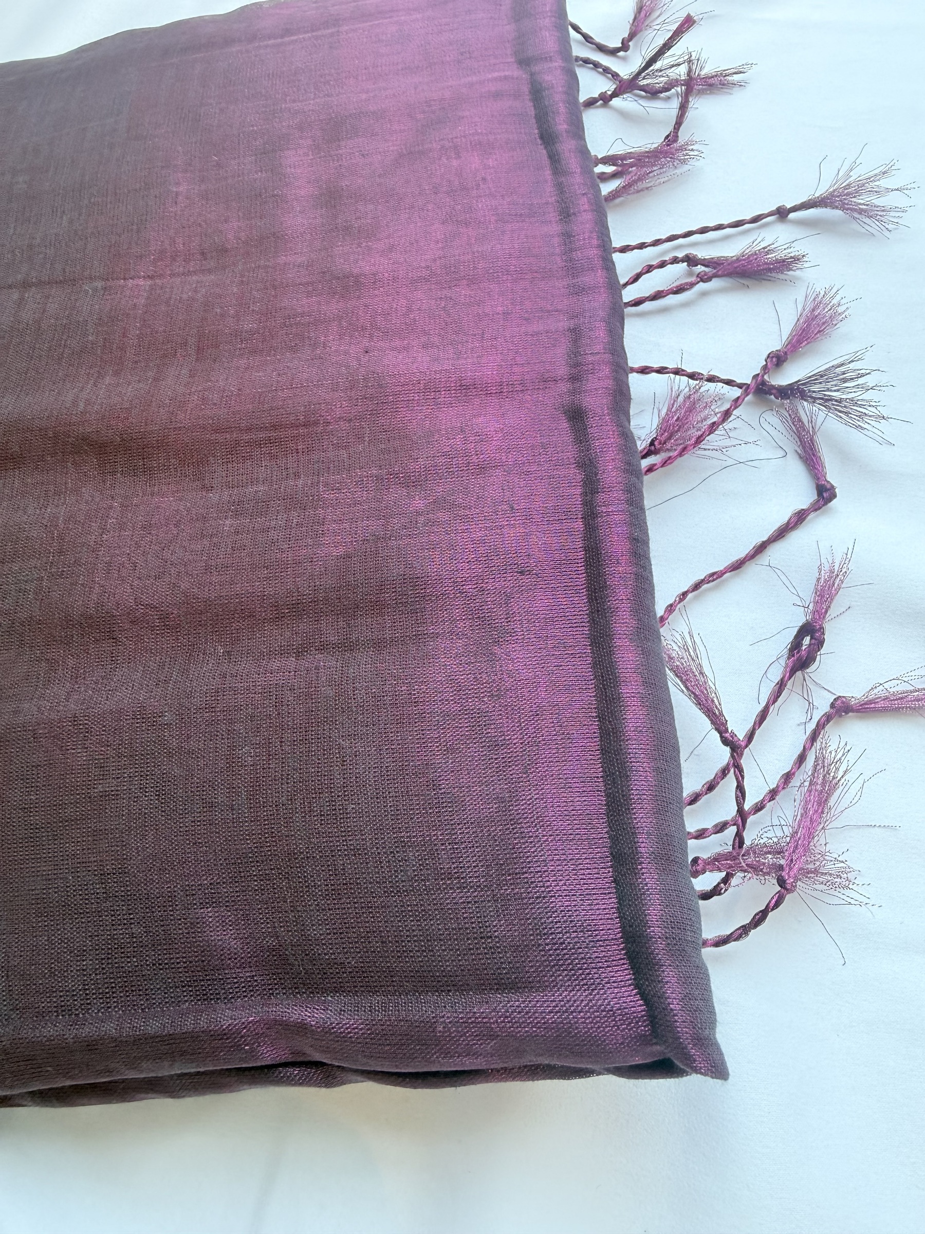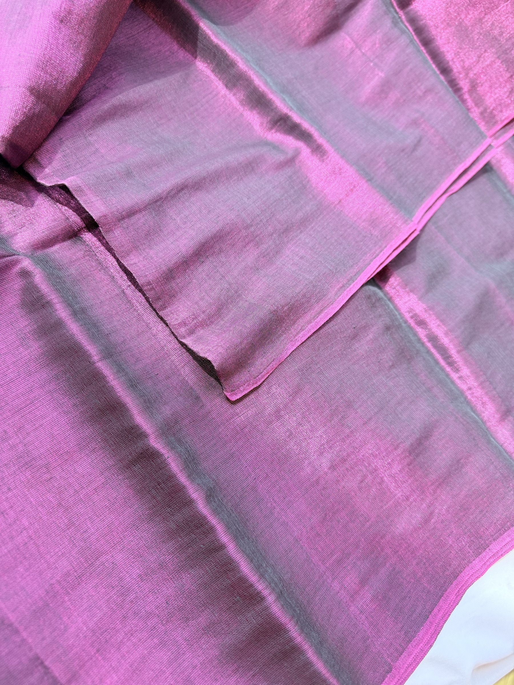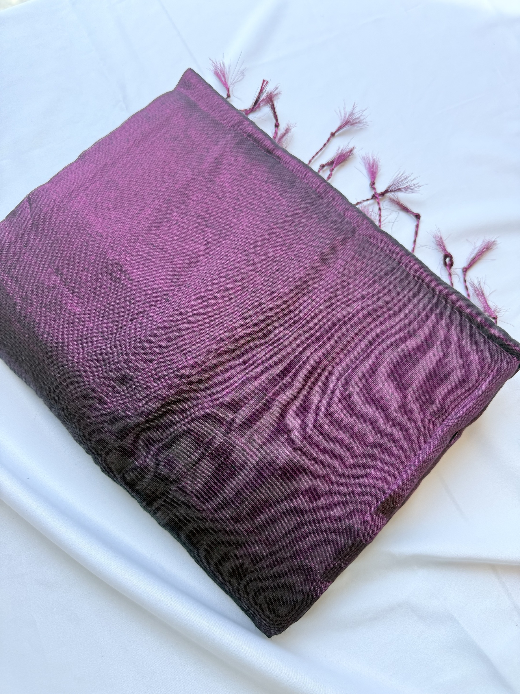 Soft and shimmer tissue cotton saree comes with attached running colour blouse material.