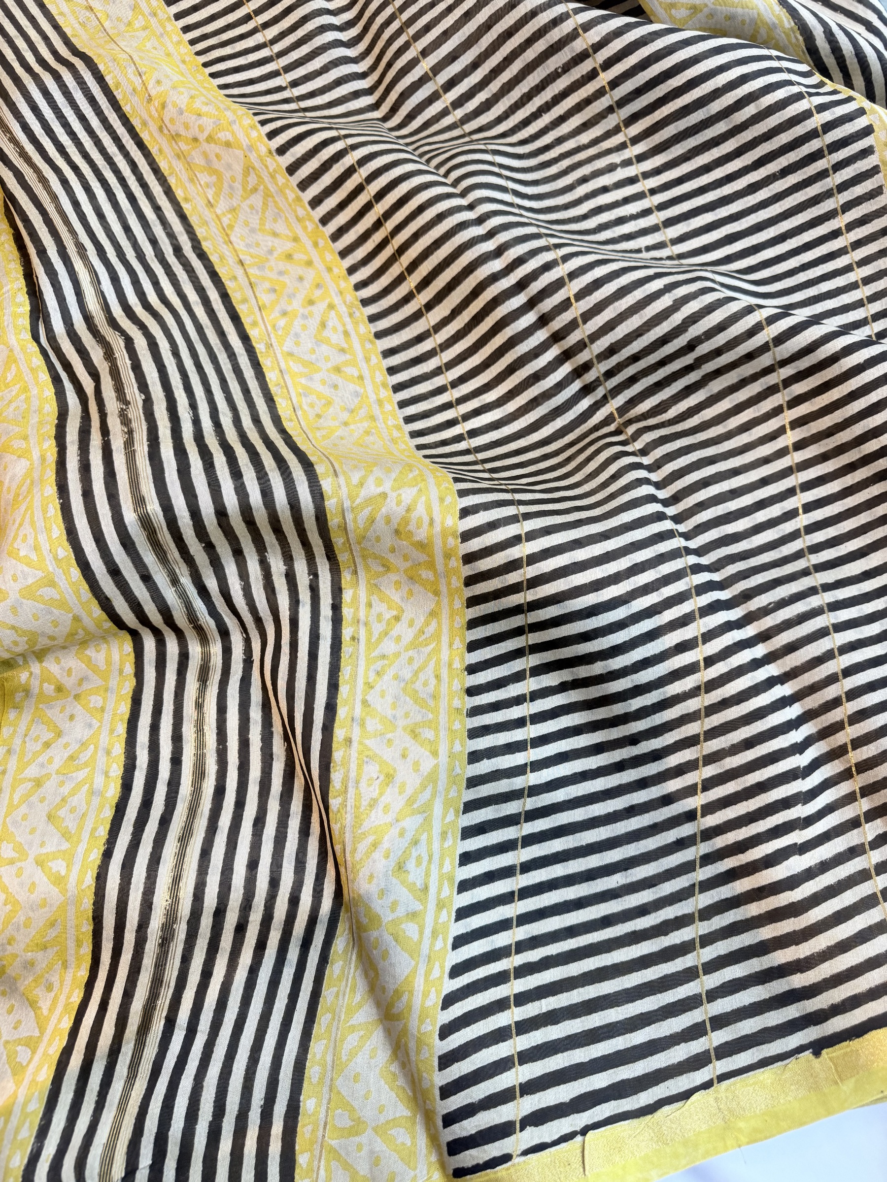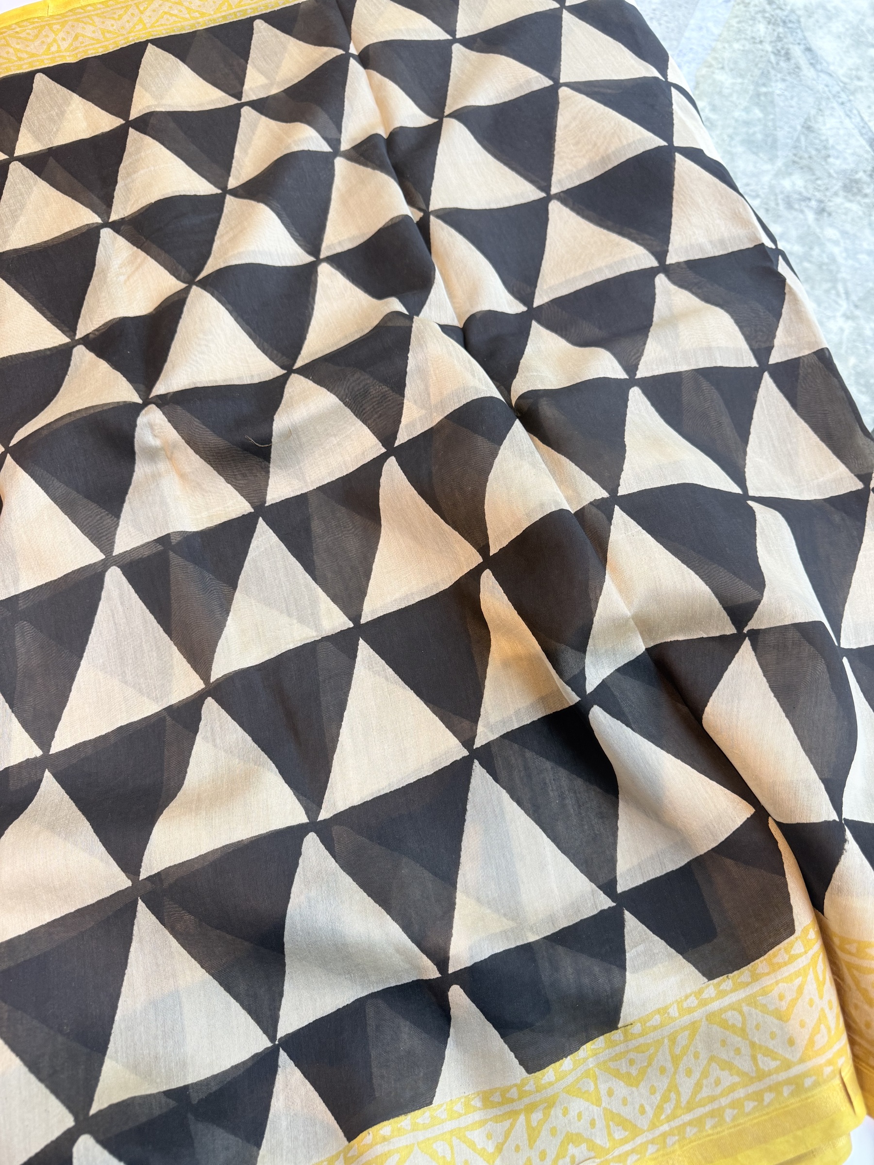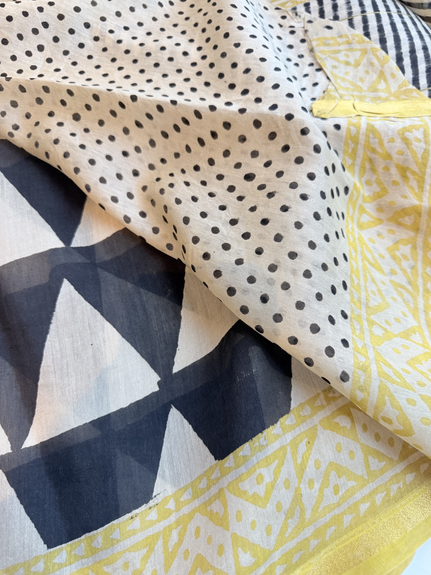 Ethnic design printed soft cotton saree with contrast design blouse material (refer to last picture for blouse design).
