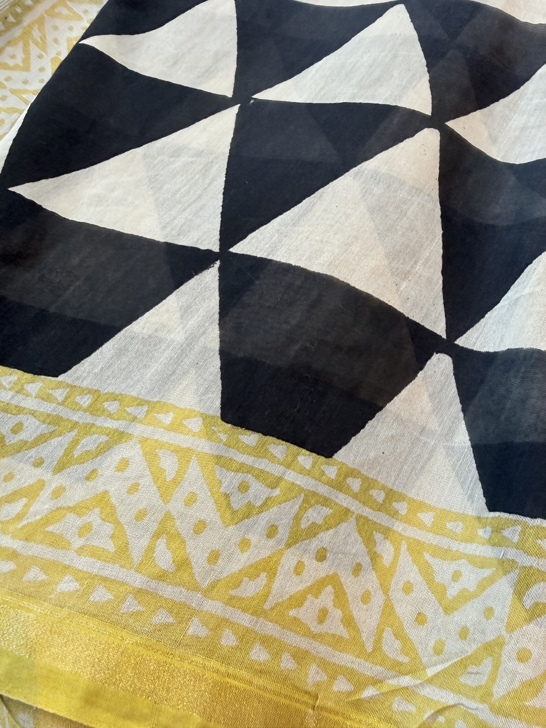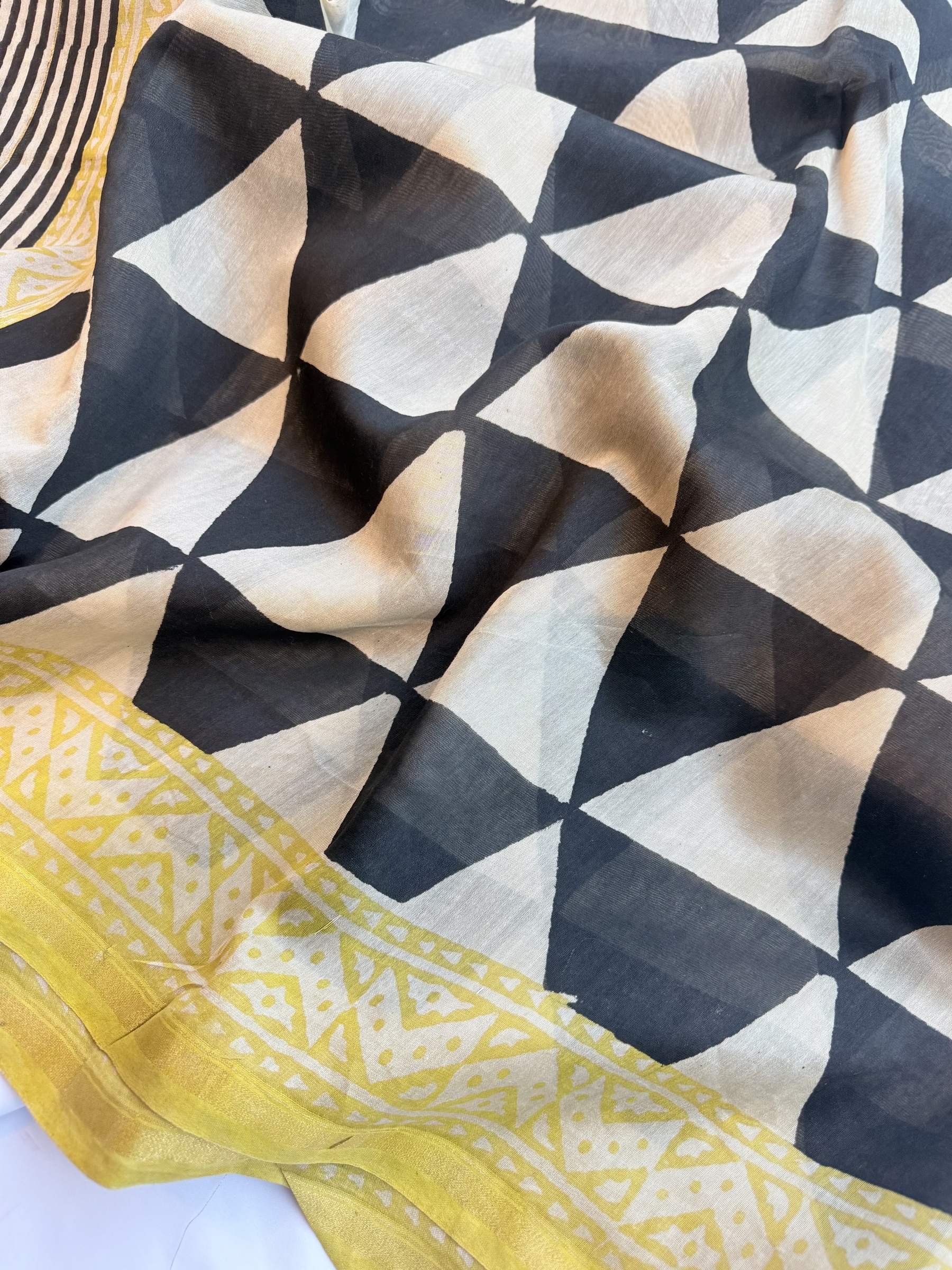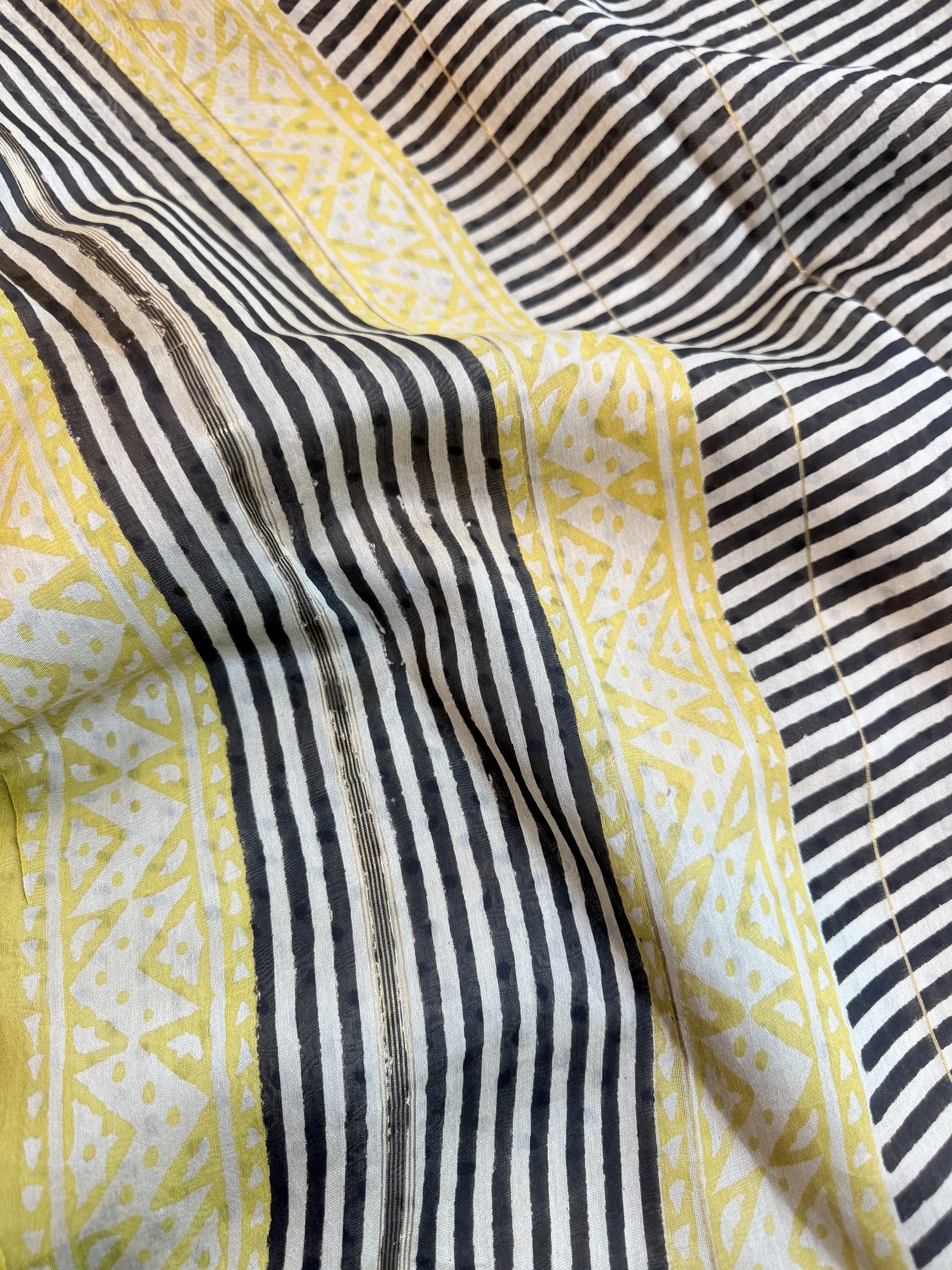 Ethnic design printed soft cotton saree with contrast design blouse material (refer to last picture for blouse design).