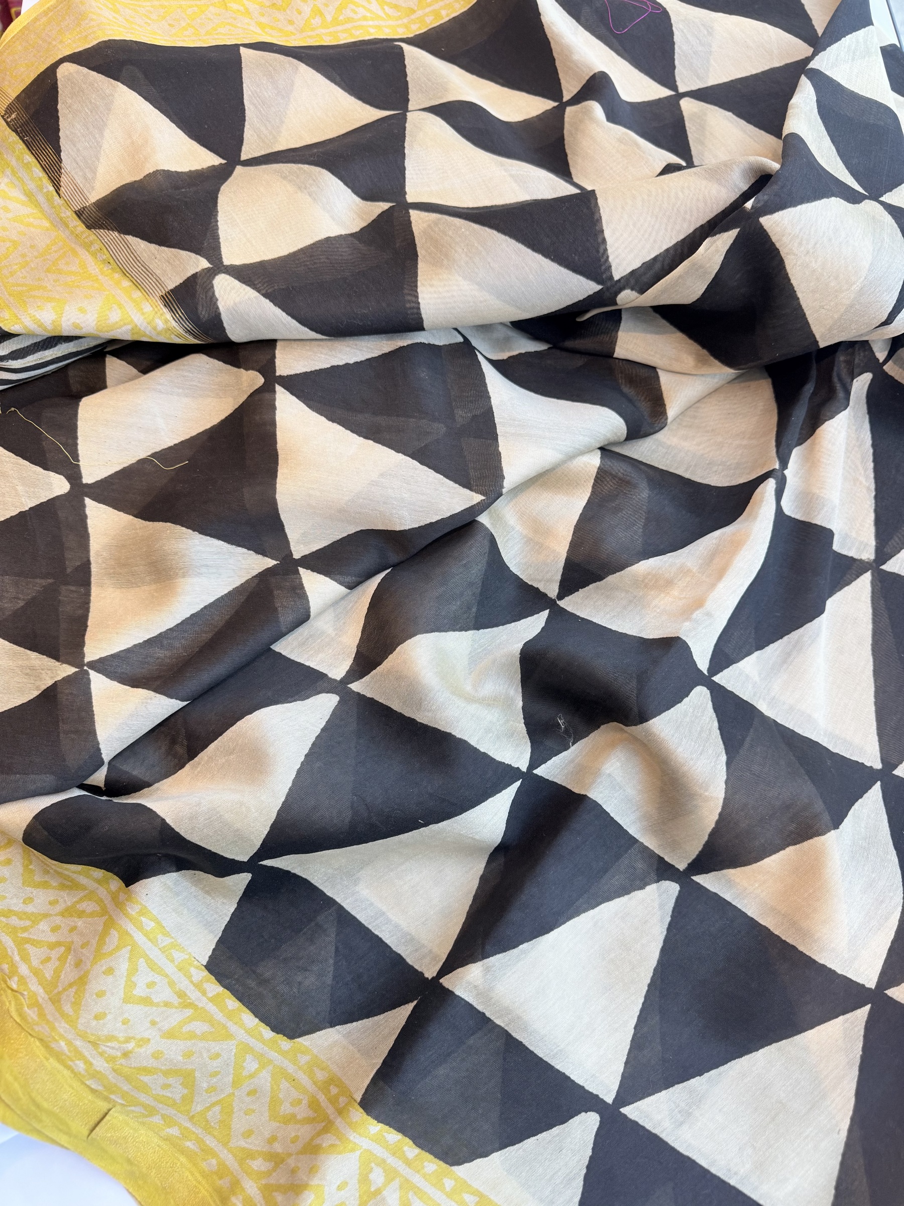 - This is a printed saree and it may have stains, smudges and misprints and they are not considered as damages.