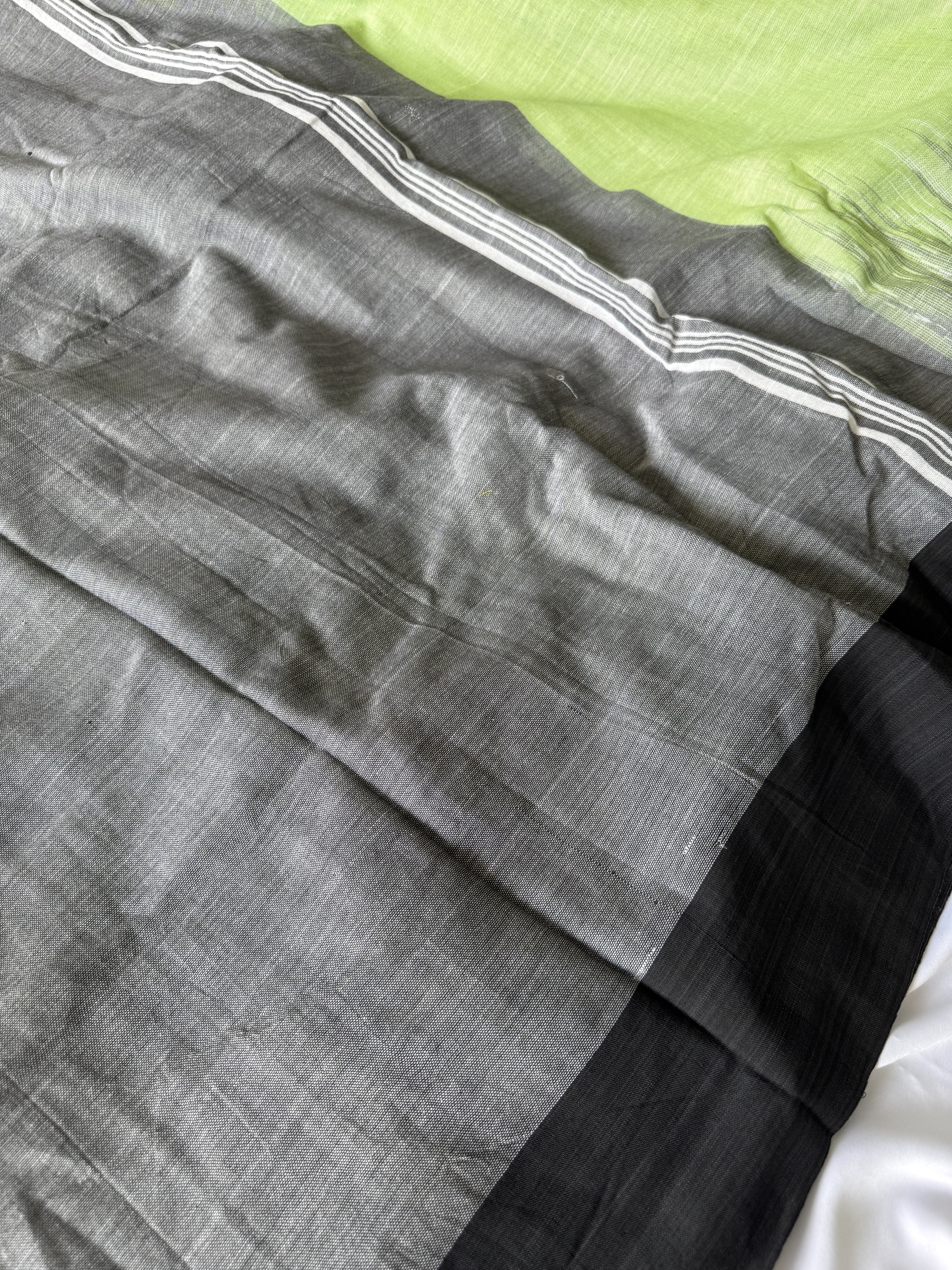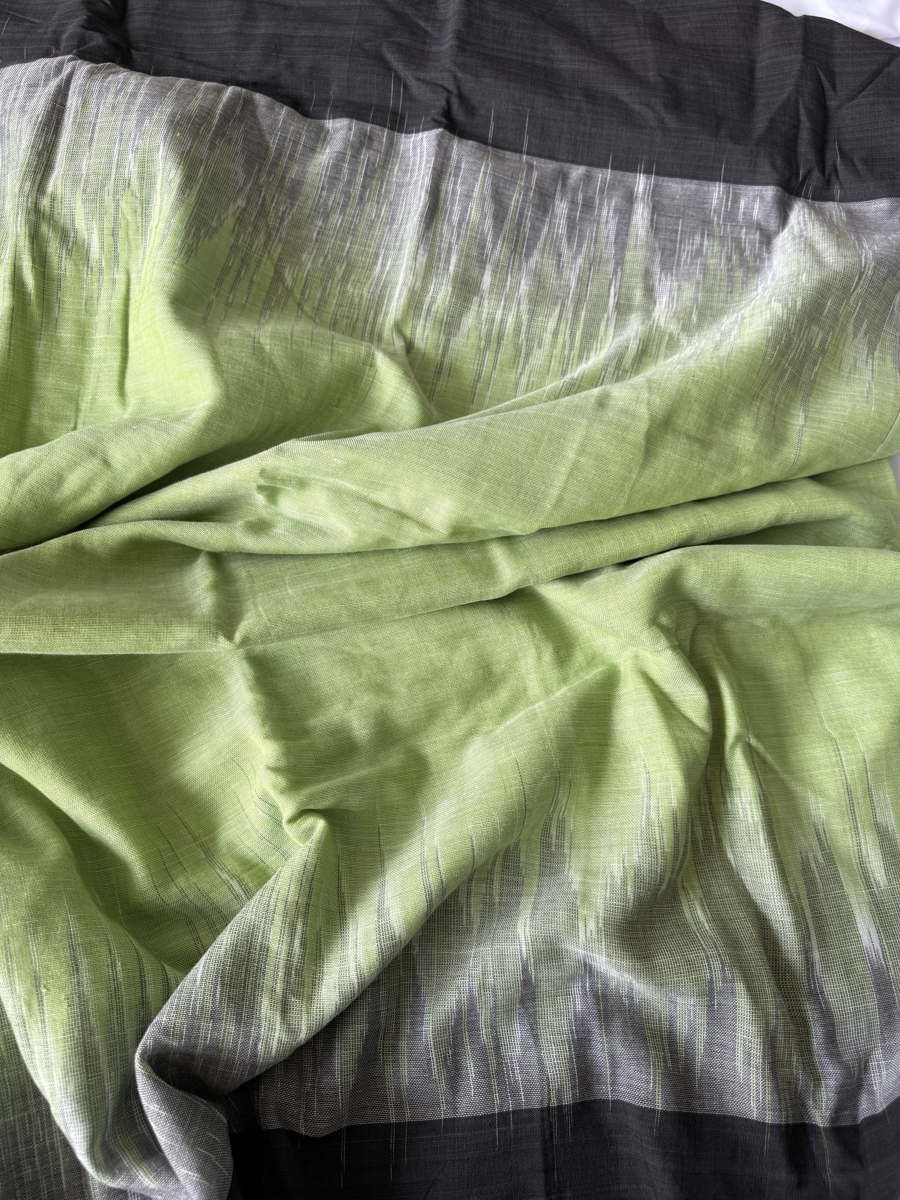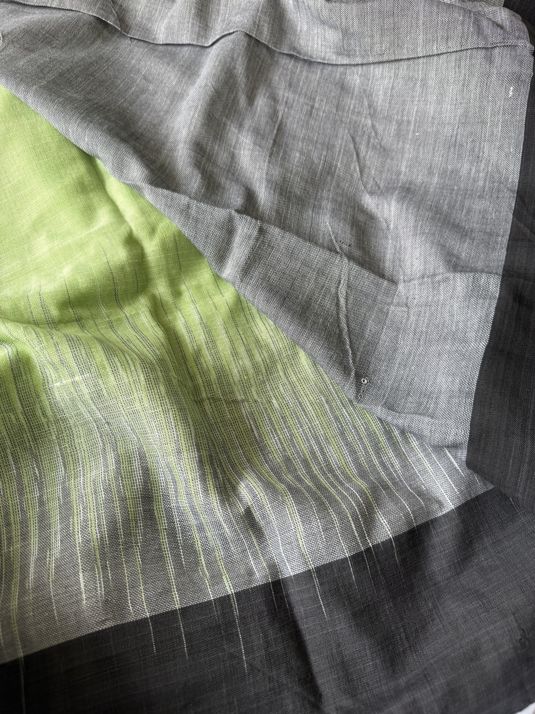 Temple border design inspired cotton saree with contrast colour pallu & blouse material.