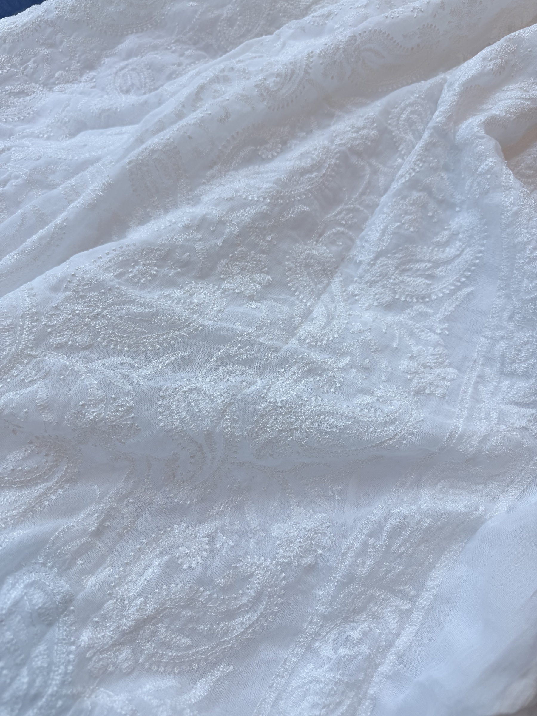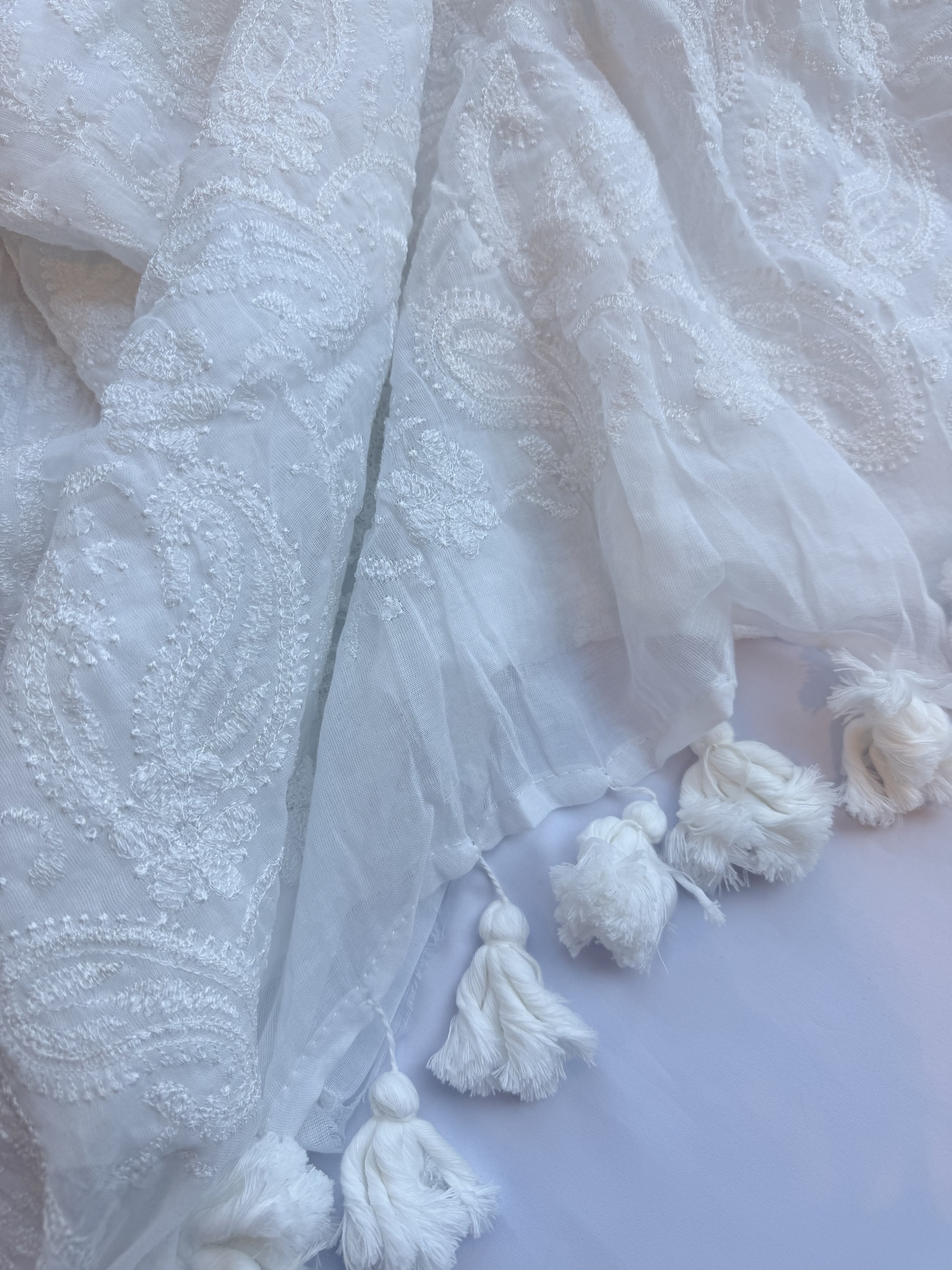 Chikankari inspired embroidery pure and soft Mulmul cotton saree