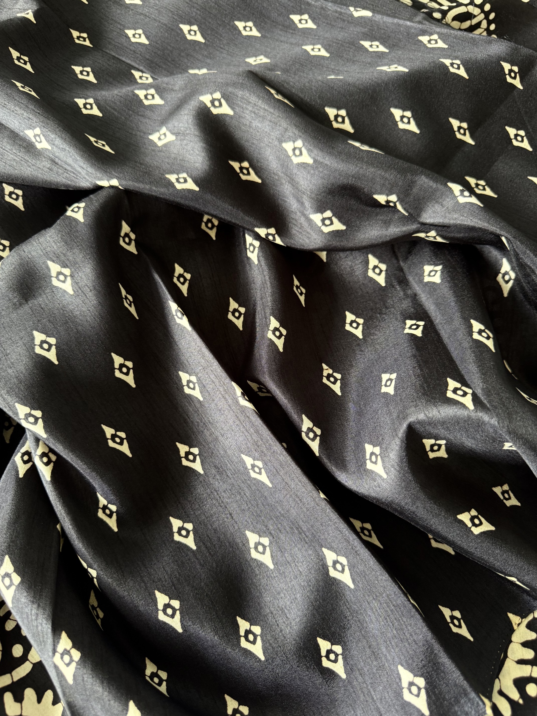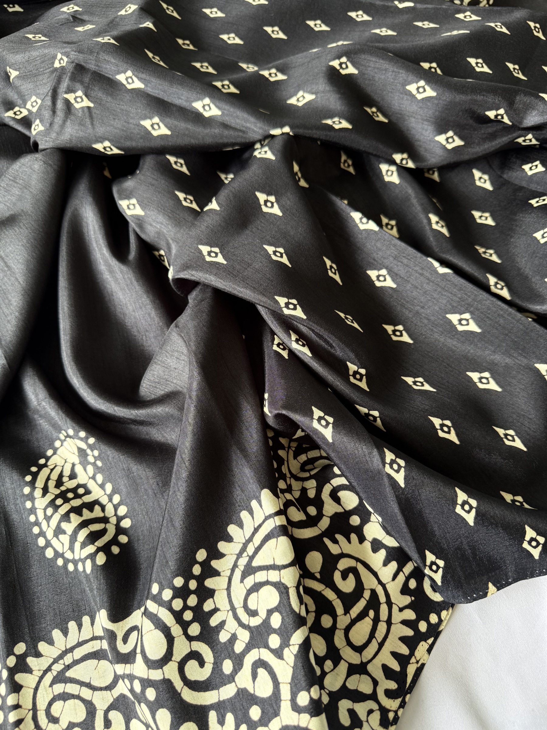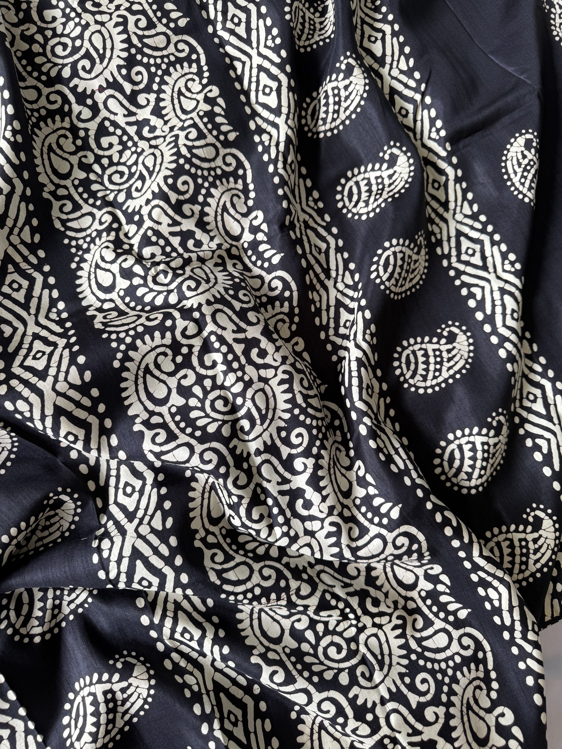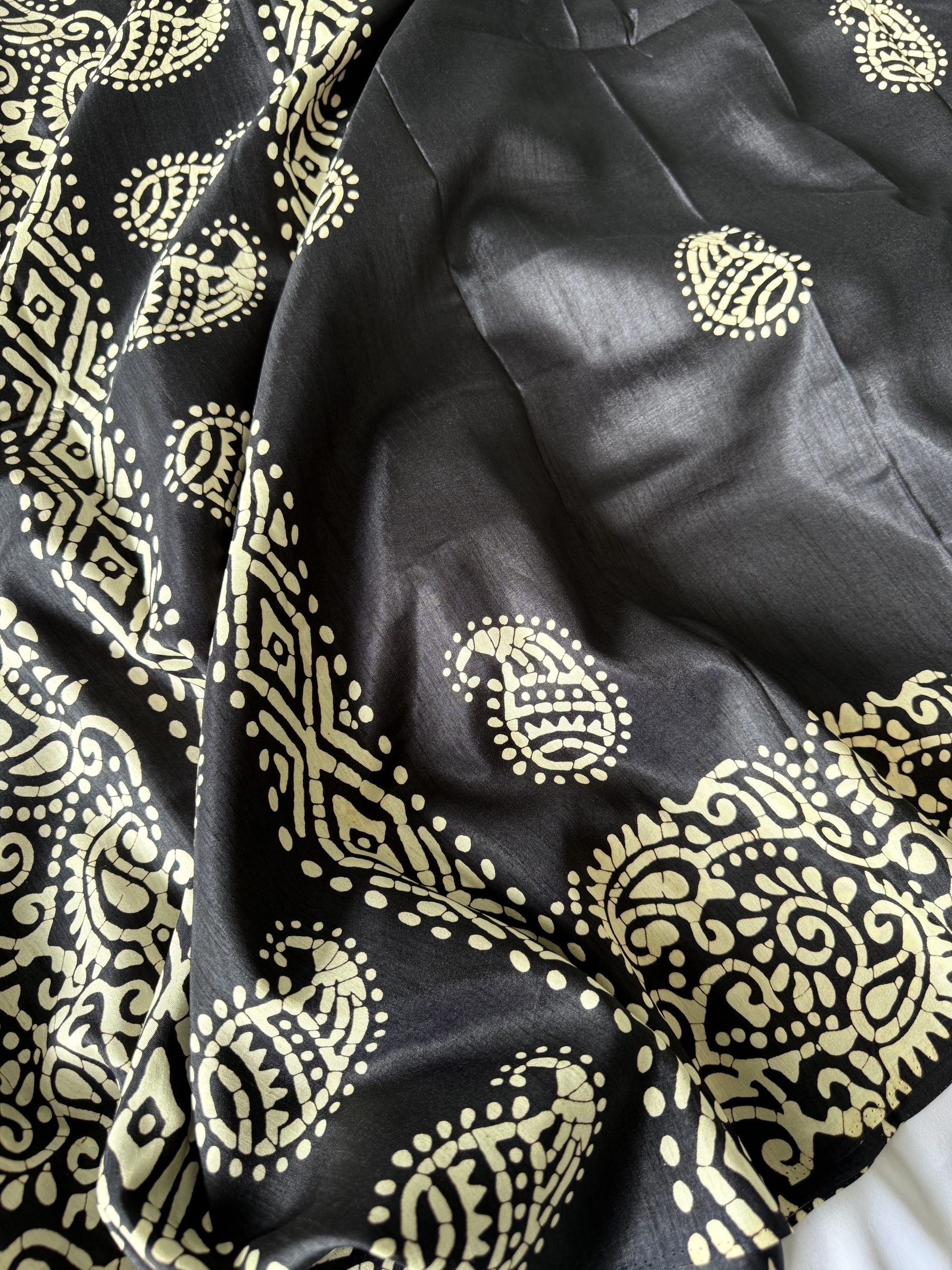Synthetic mix soft and easy to drape Dola Silk paisley design saree with contrast design pallu and contrast design attached blouse material.