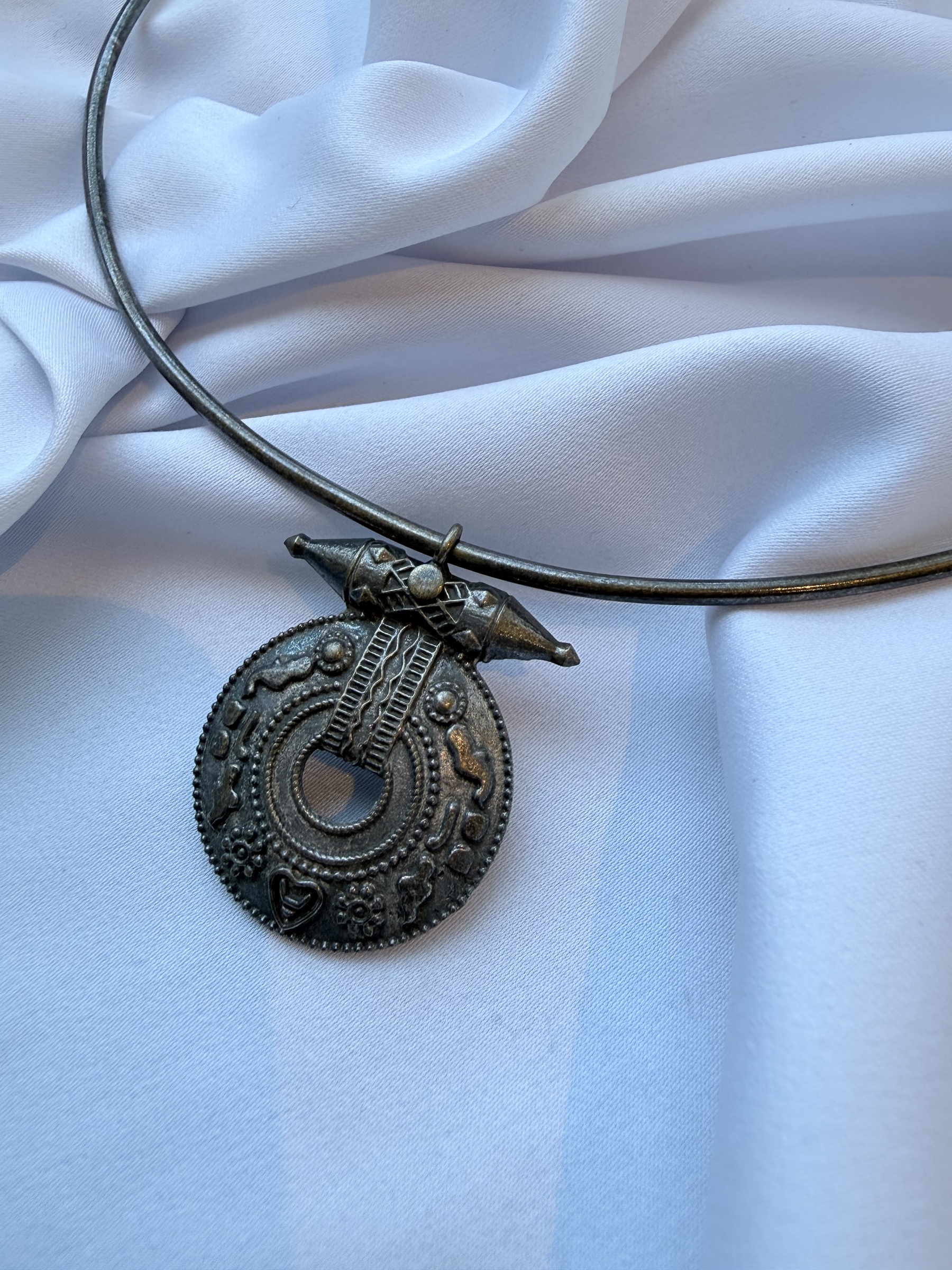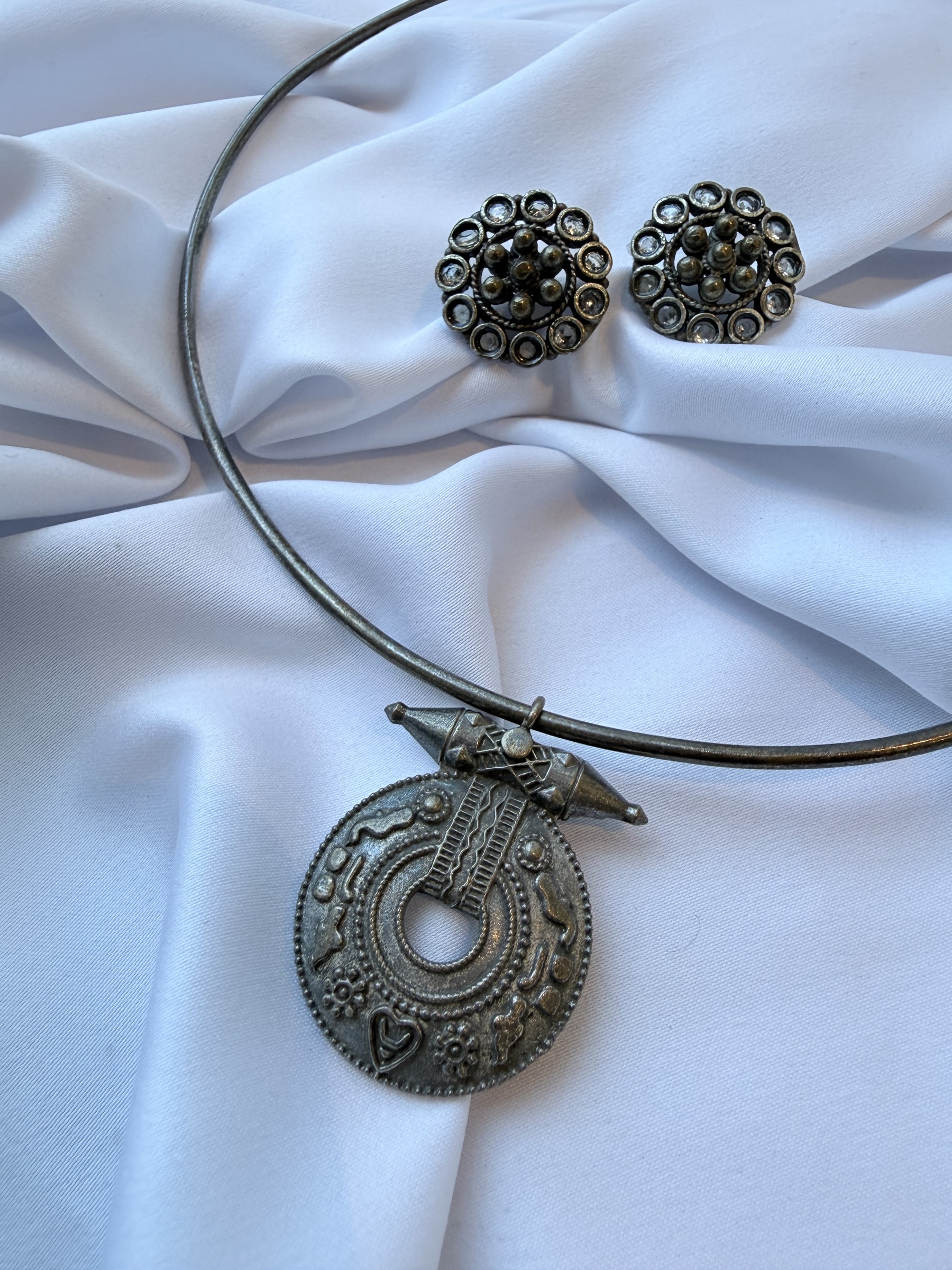 Oxidized silver Hasli design choker set  and comes with matching pair stud earrings.