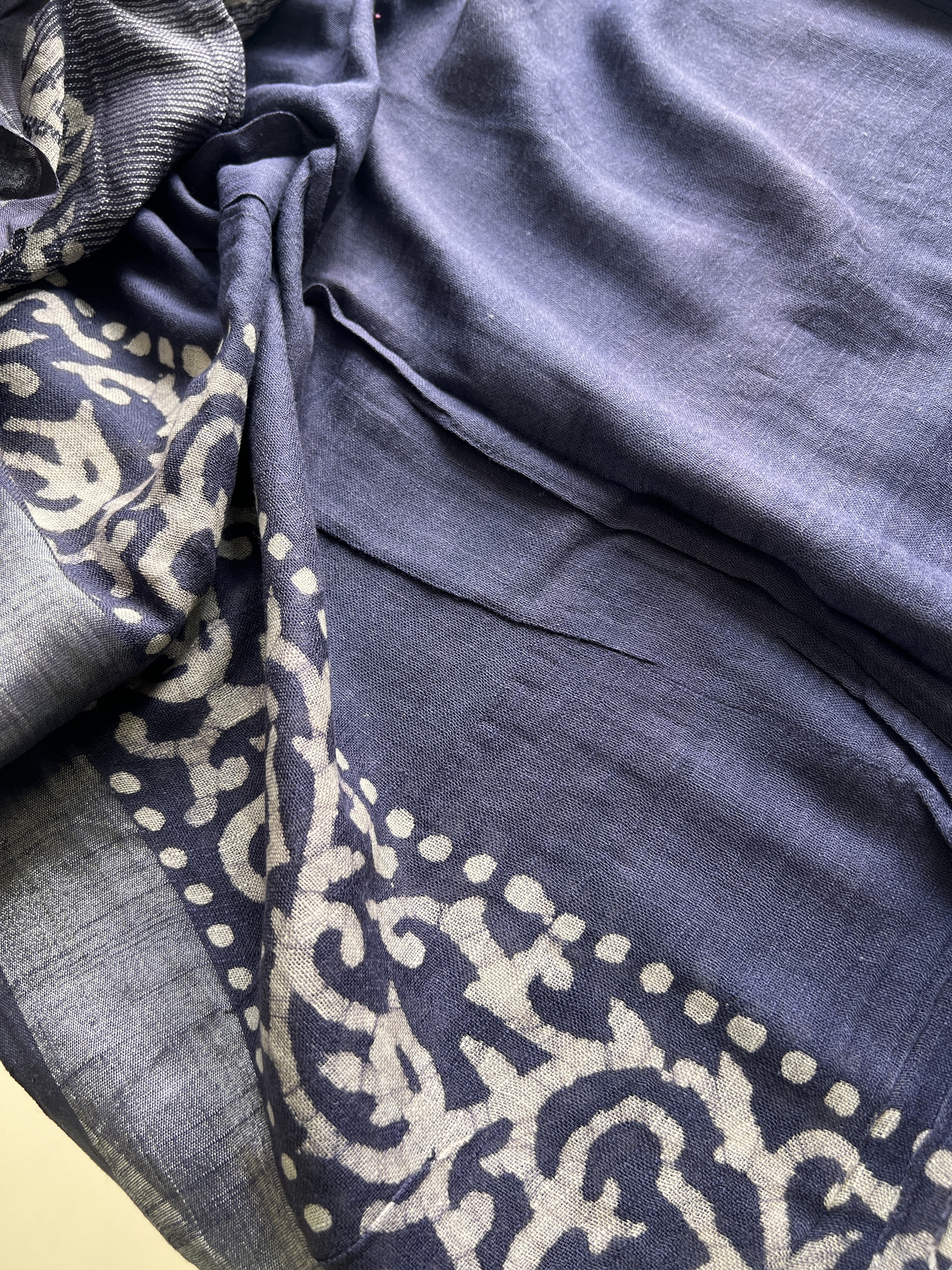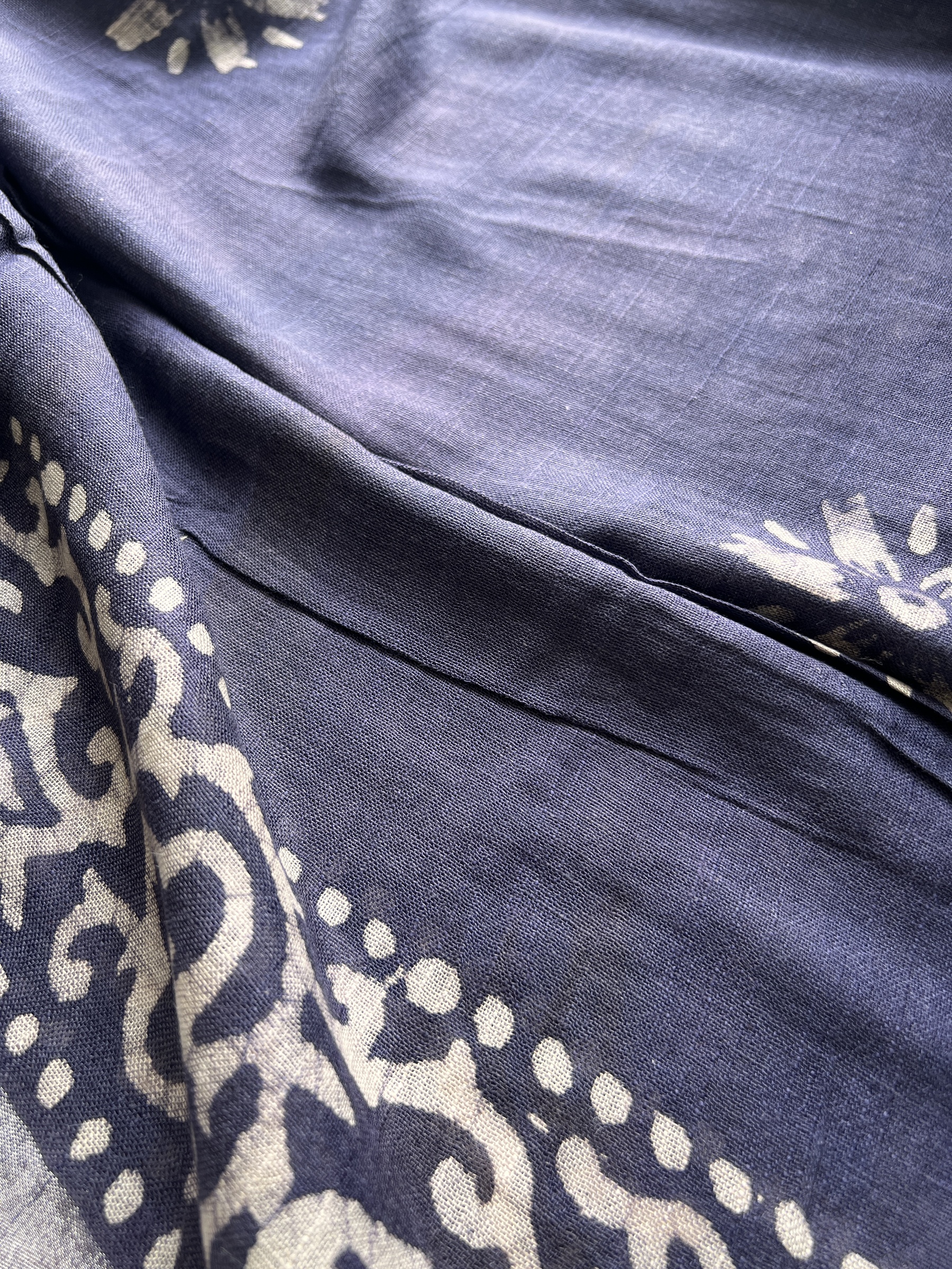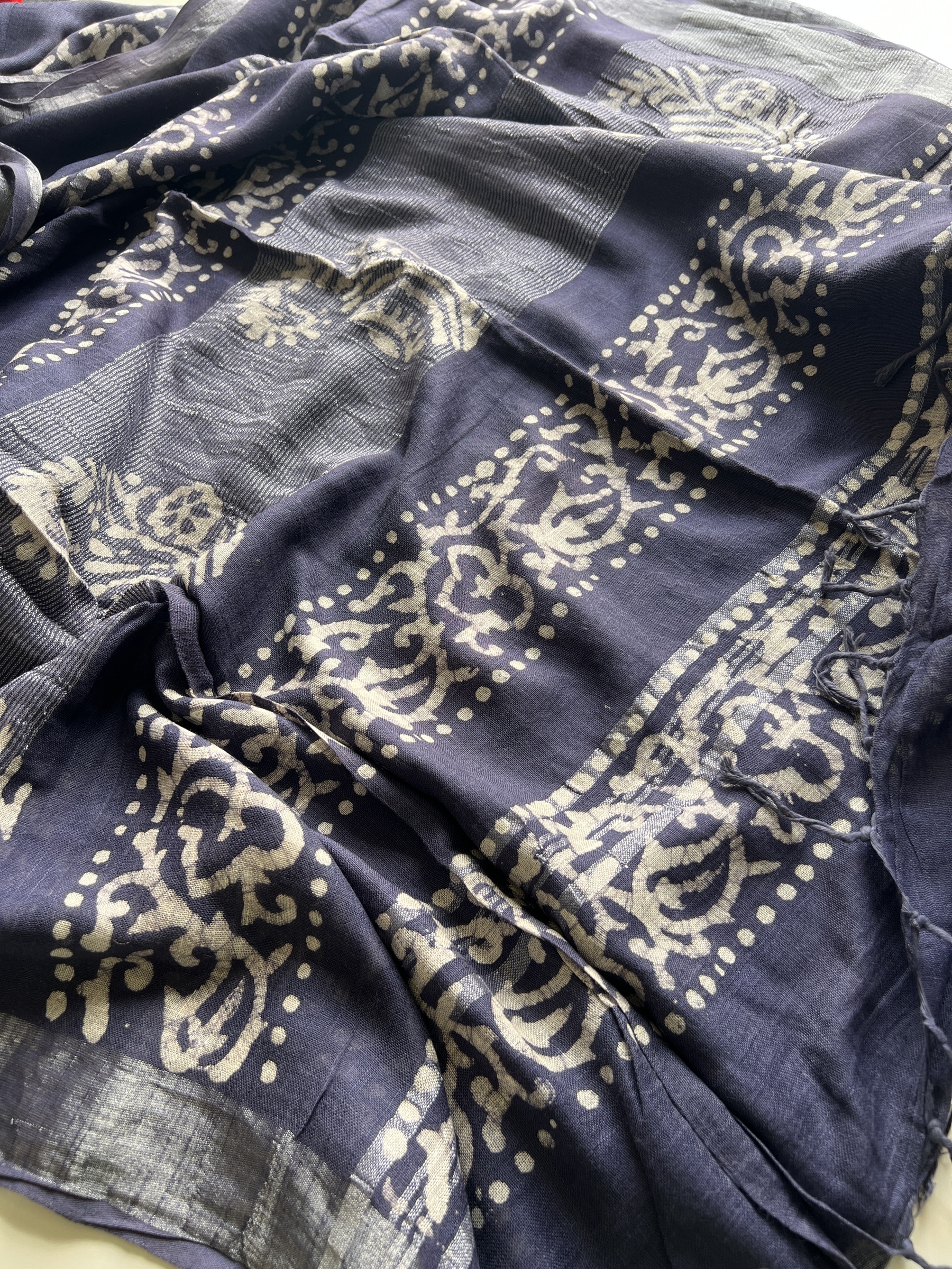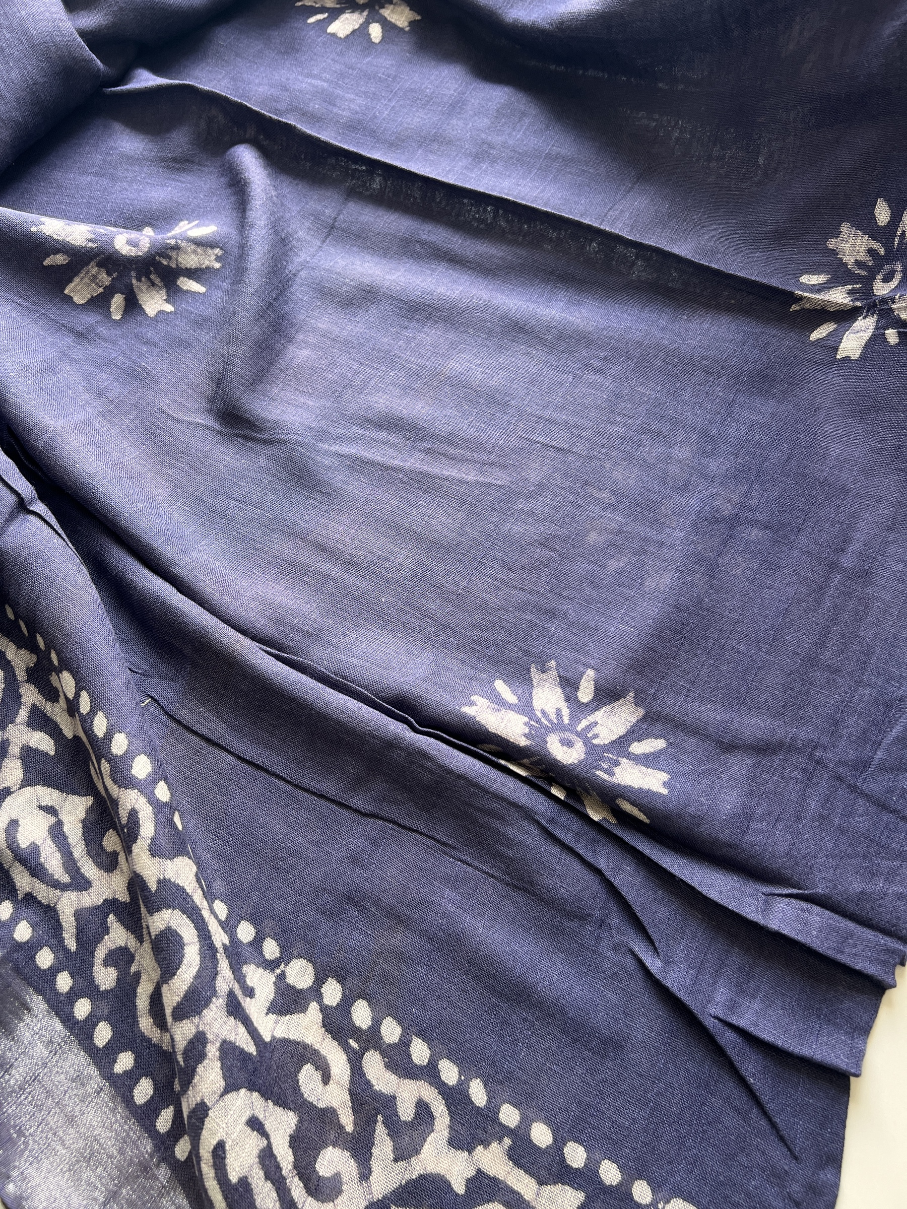 Lightweight soft cotton Batik design inspired saree with attached running colour blouse material.