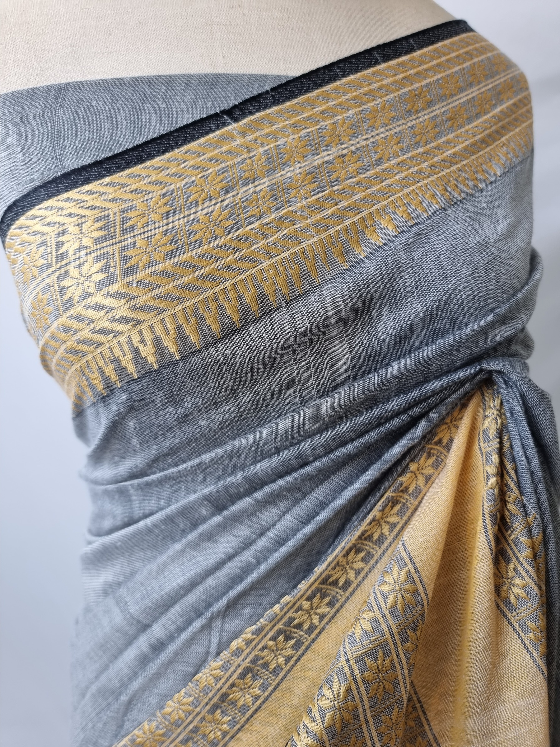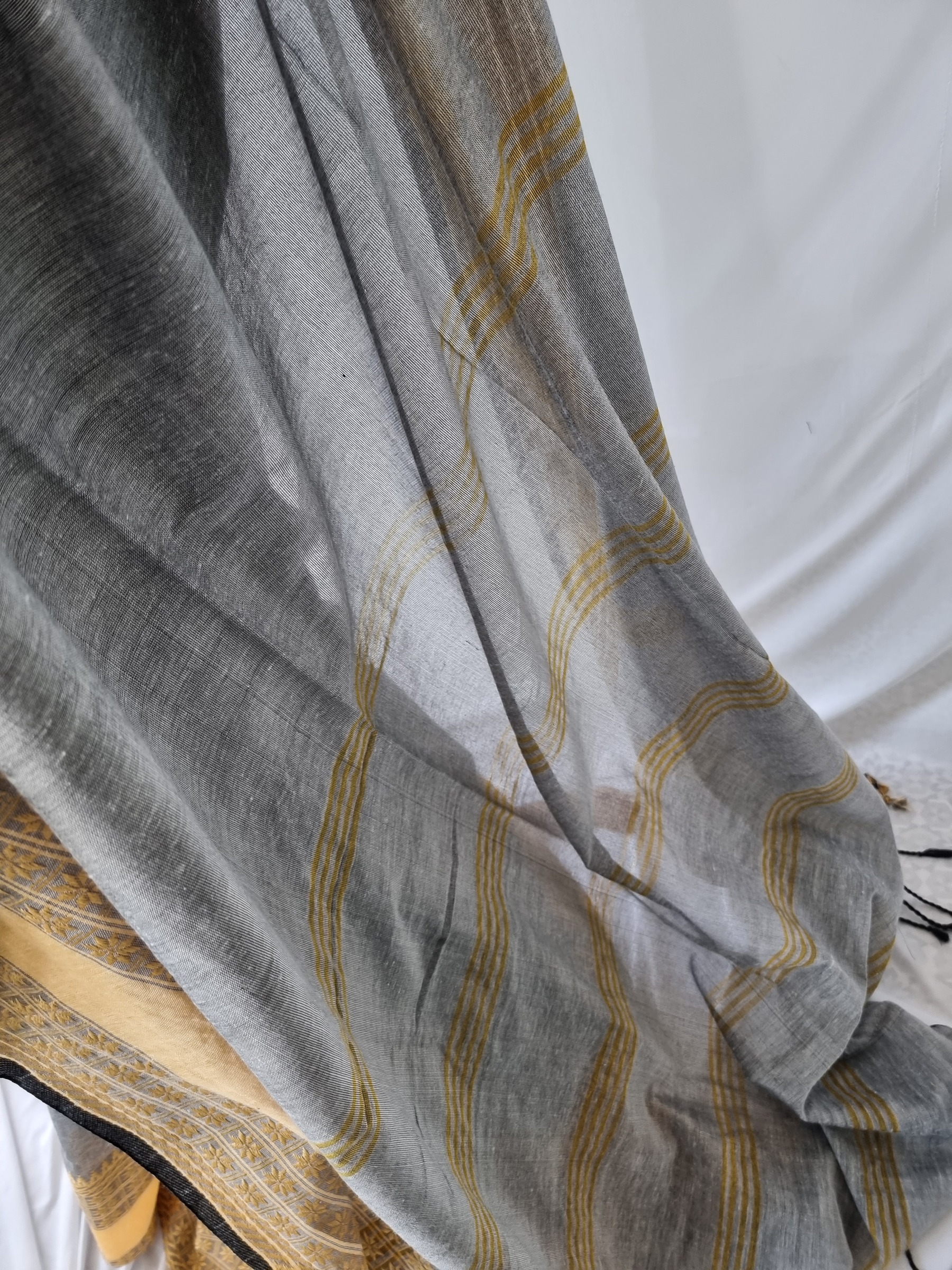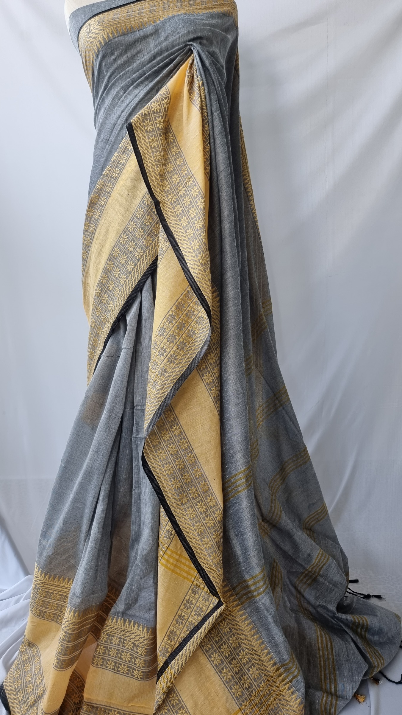Soft cotton saree from Bengal with thread woven border and attached running colour blouse material.
