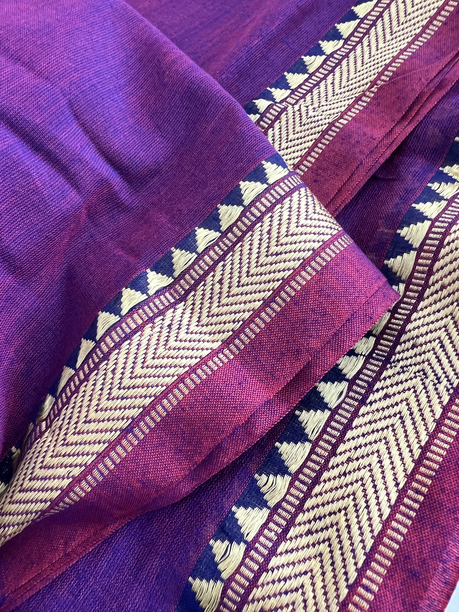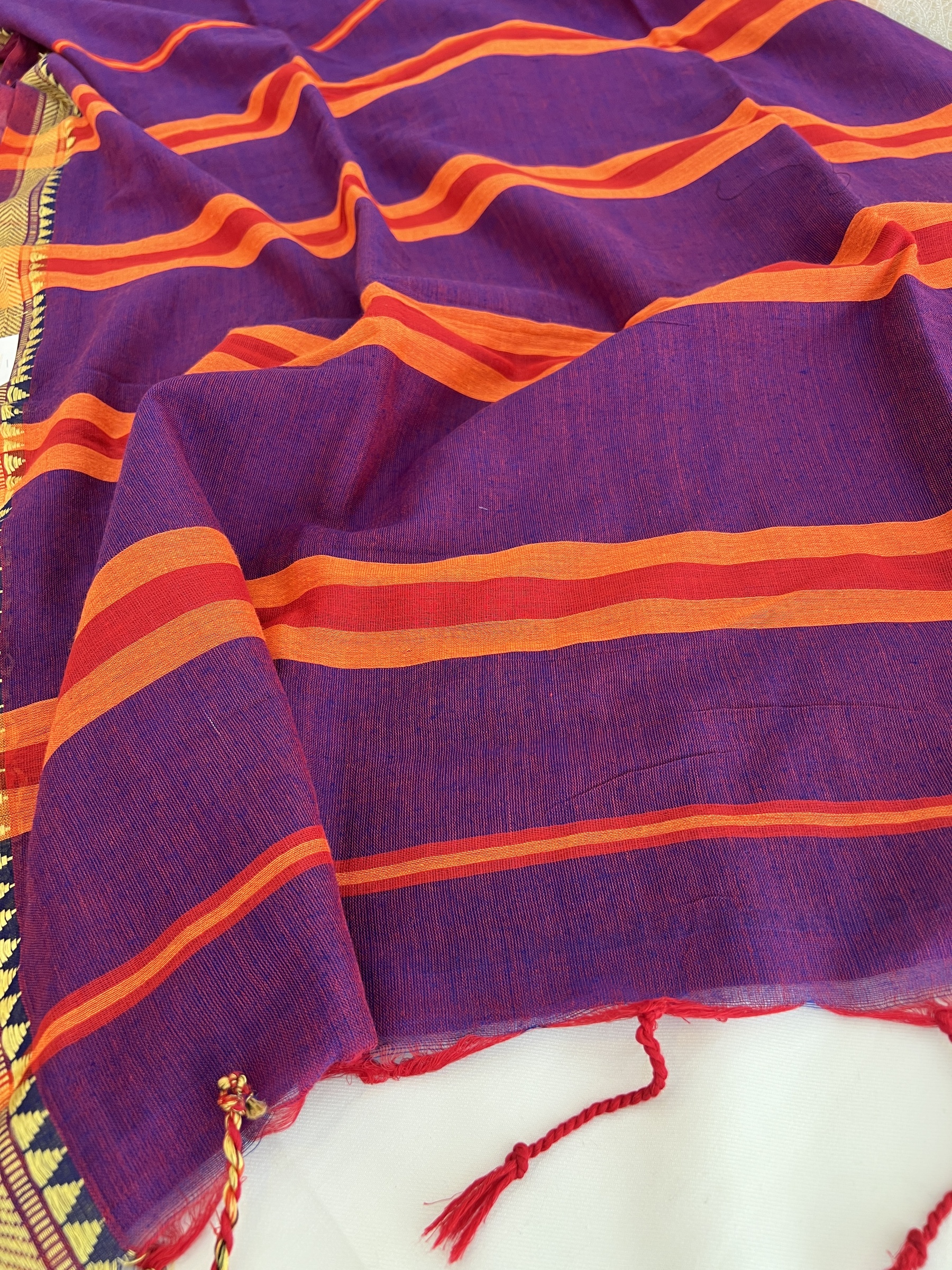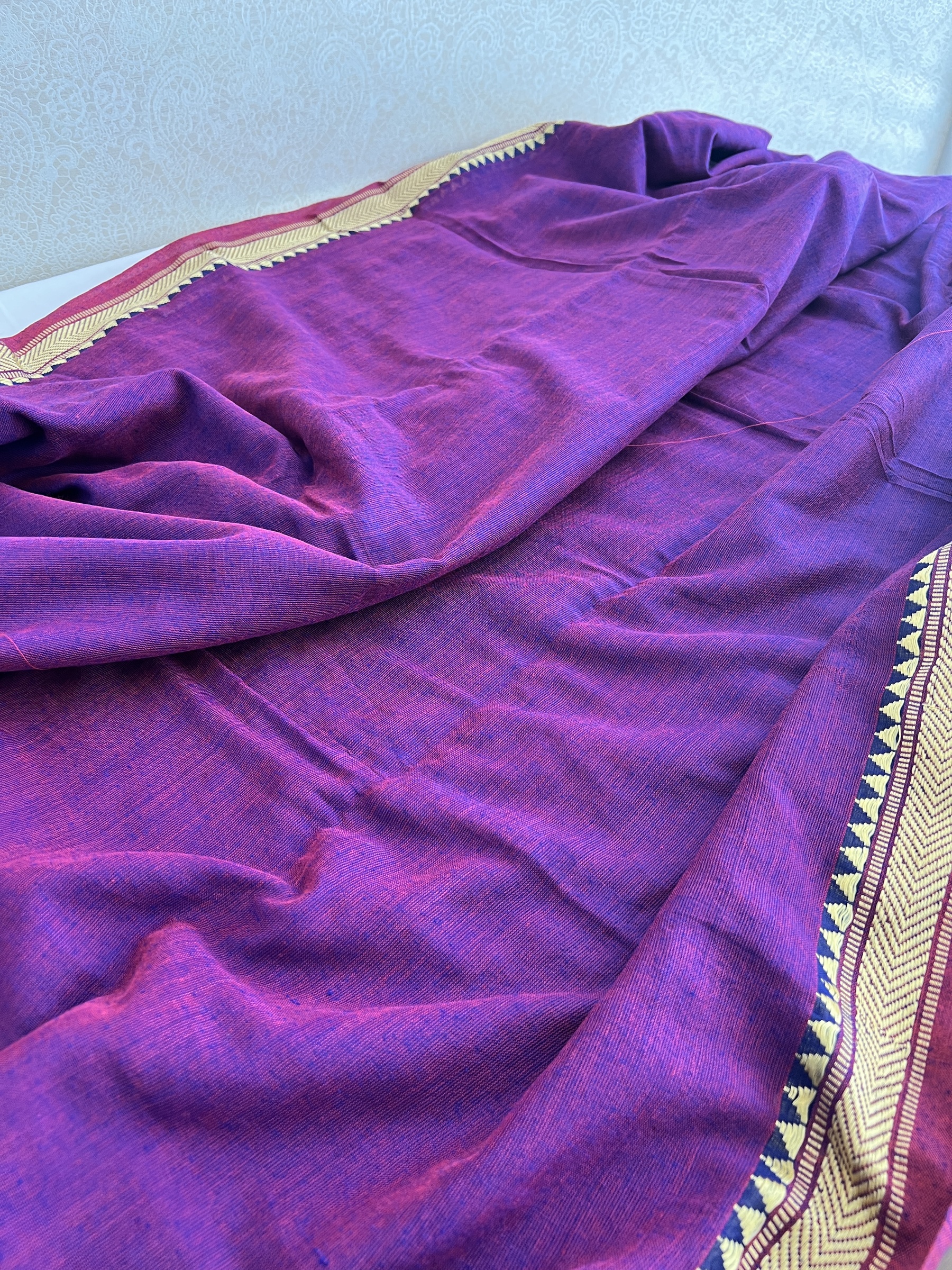 Soft cotton saree from Bengal with thread woven traditional border and attached running colour blouse material.