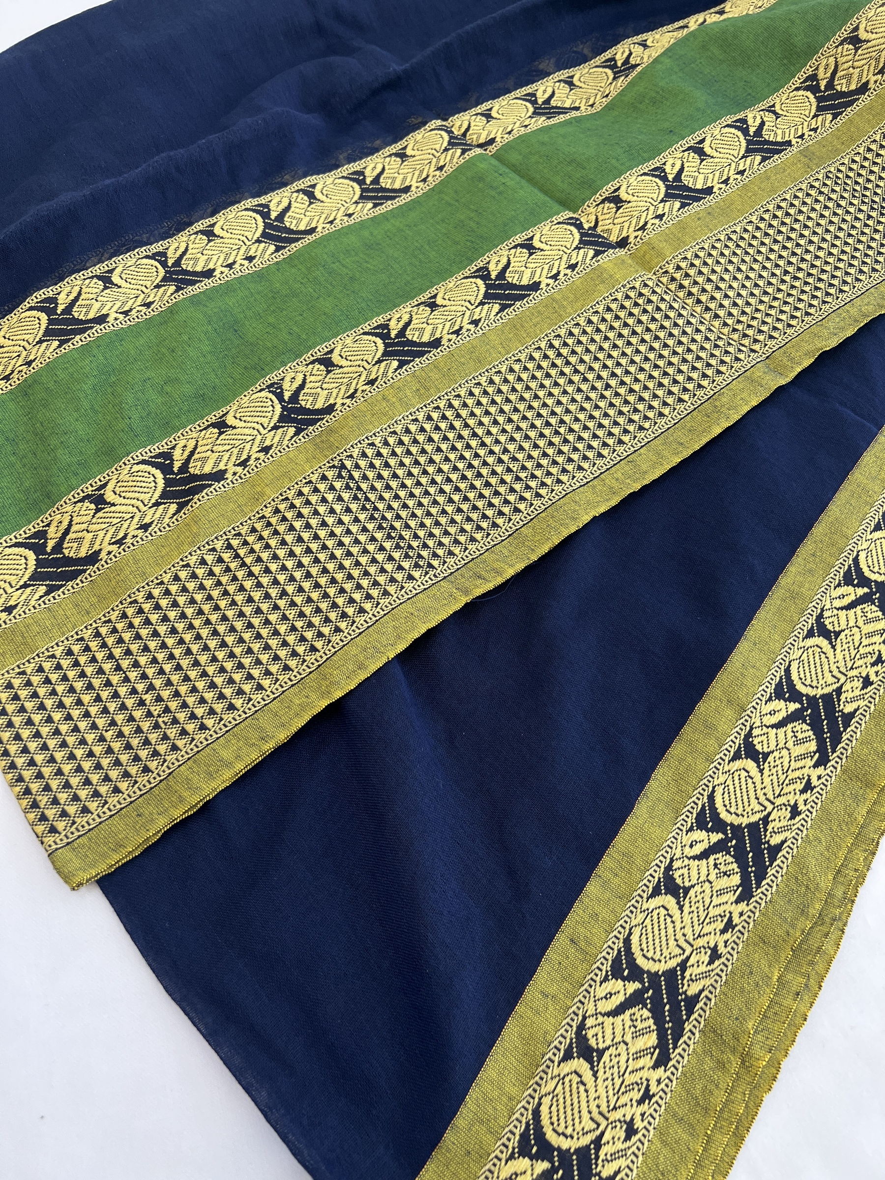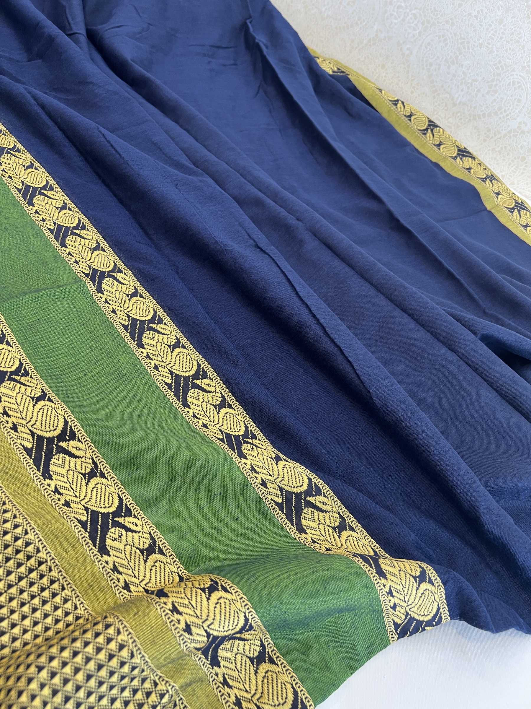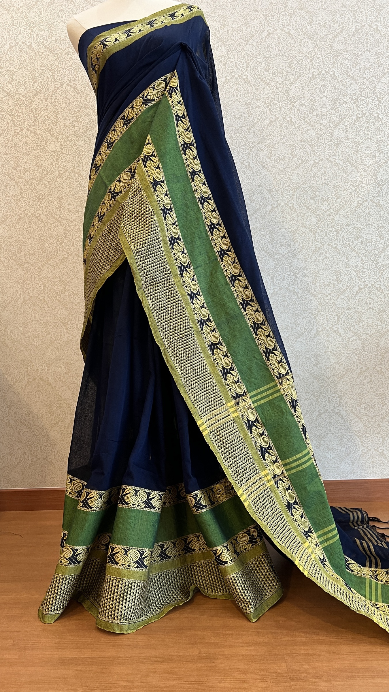 Mercerised Narayanpet cotton saree with attached running colour blouse material and grand Annam border and pallu.