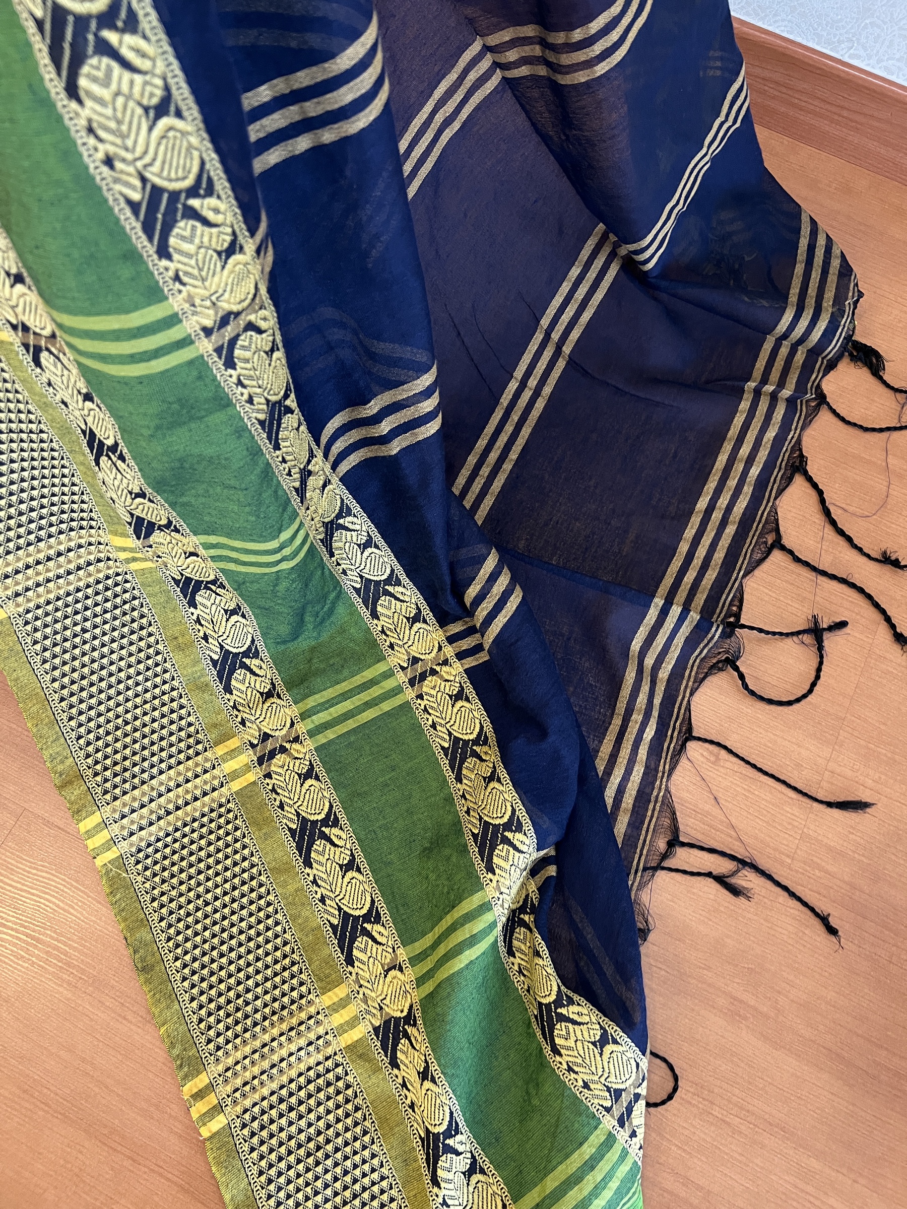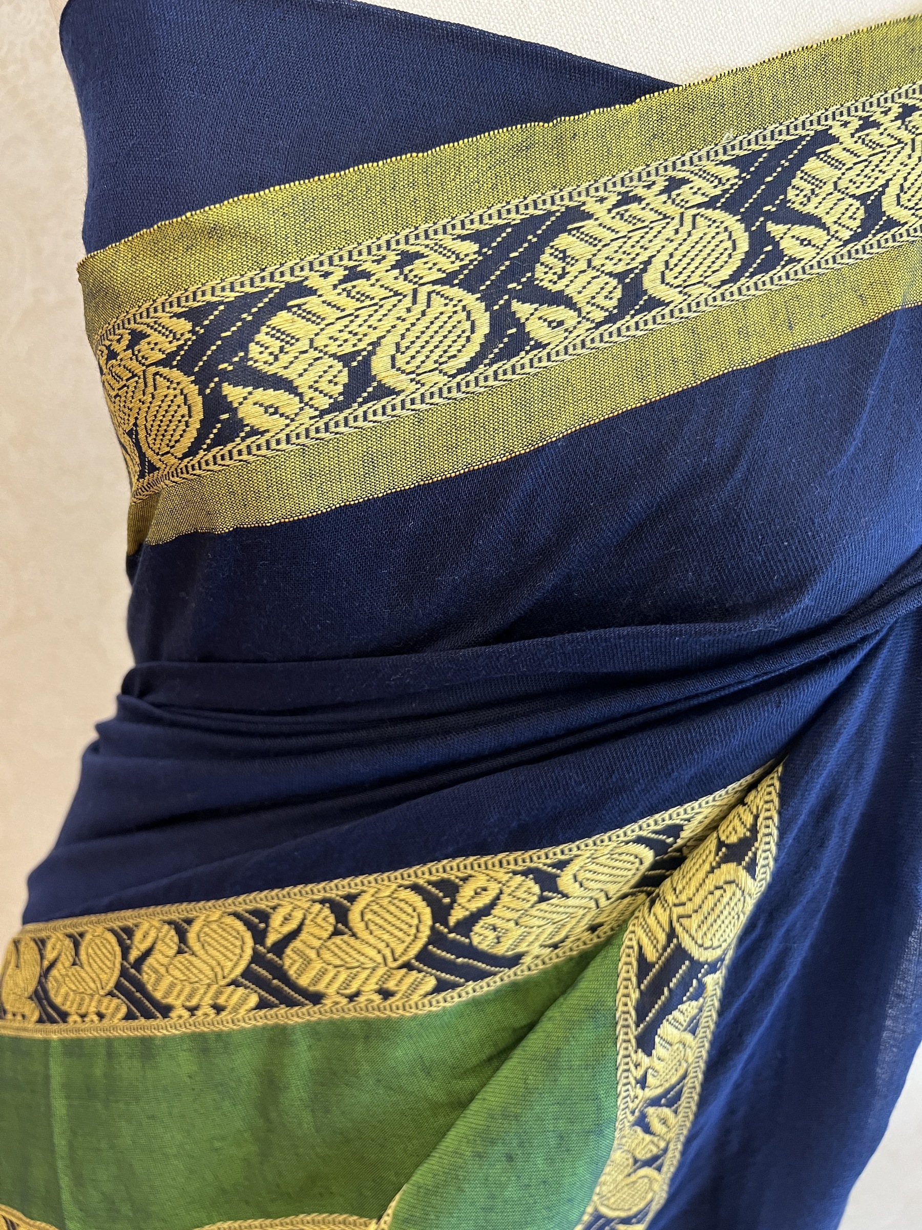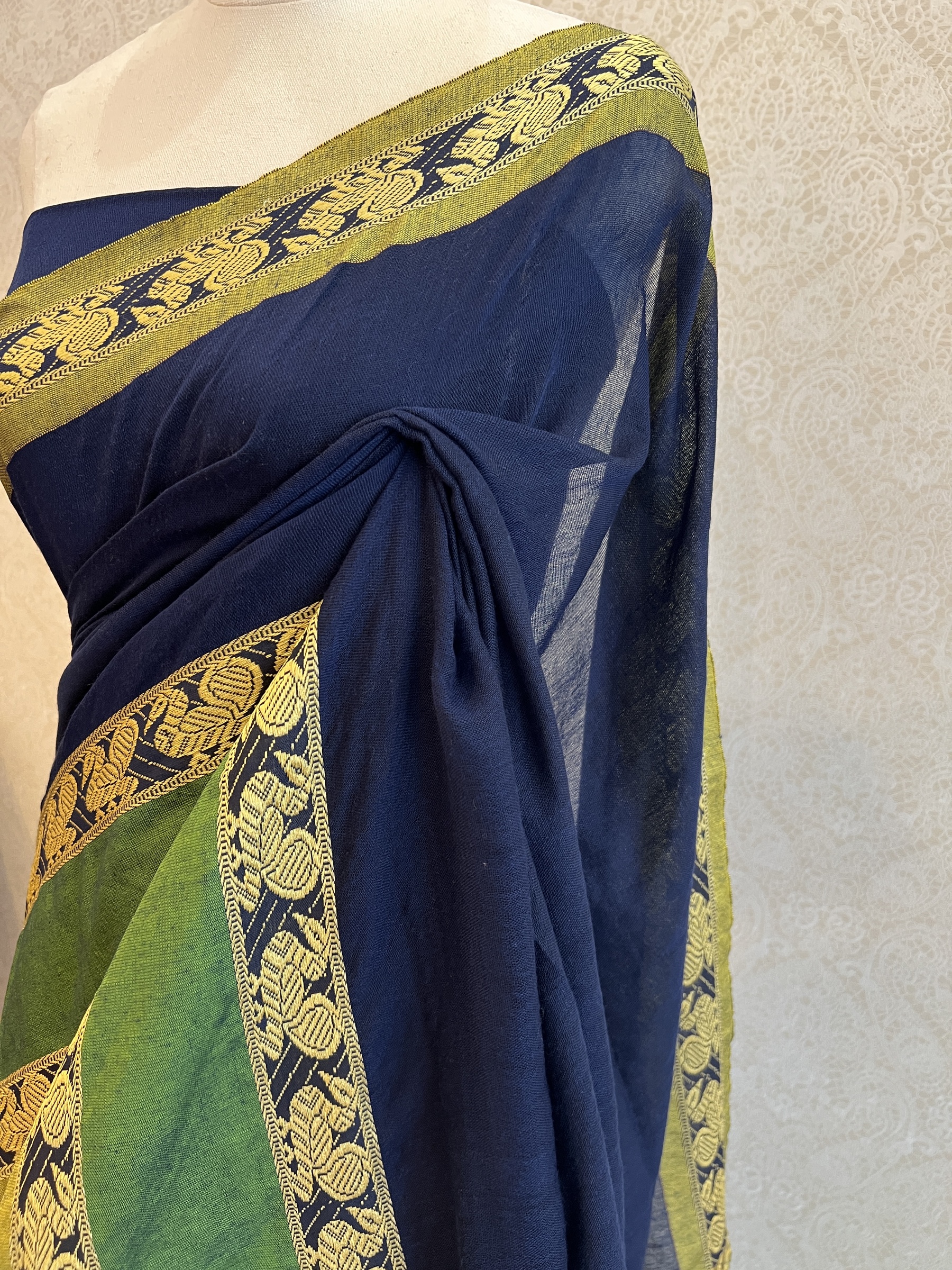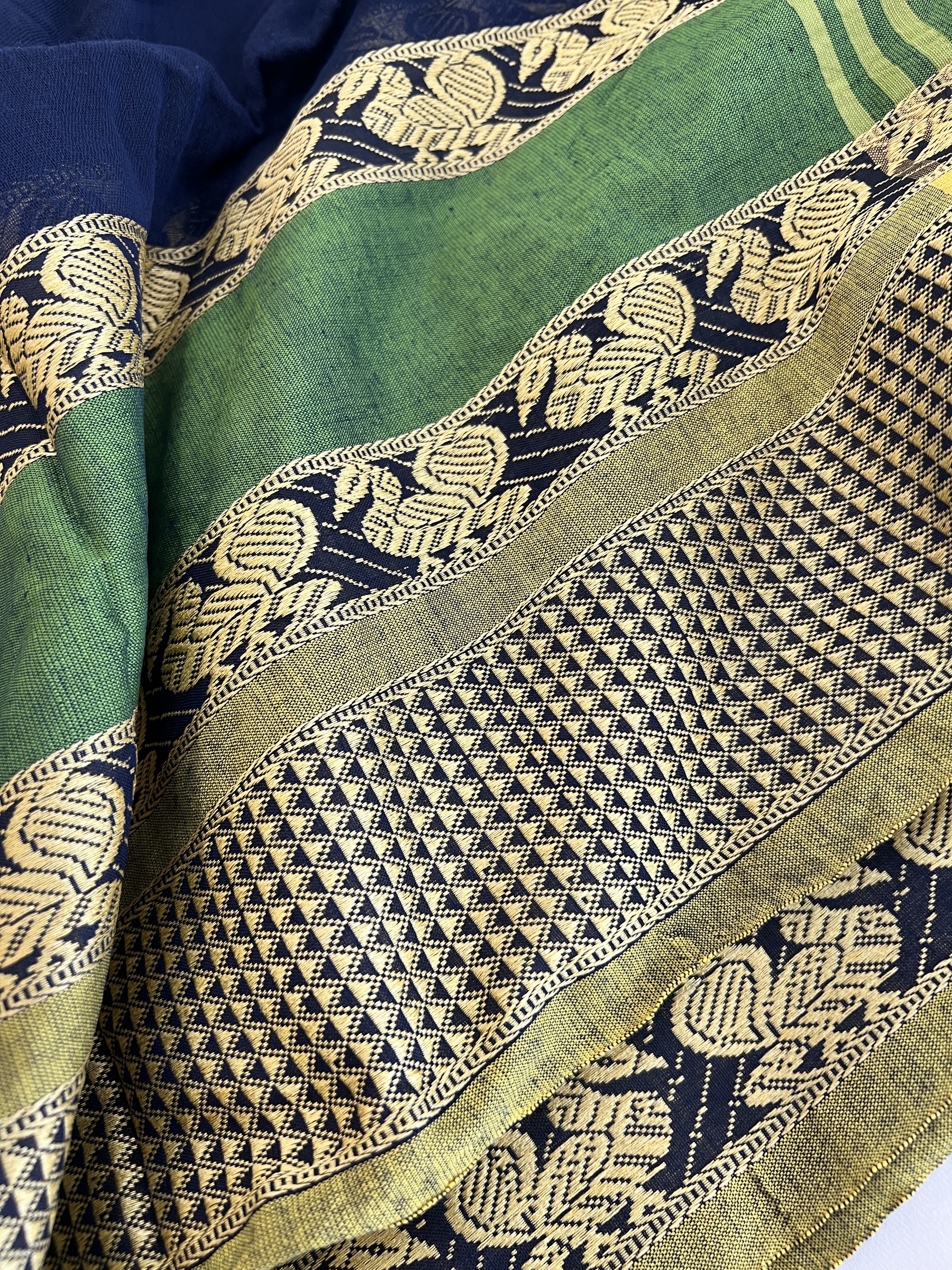 Mercerised Narayanpet cotton saree with attached running colour blouse material and grand Annam border and pallu.