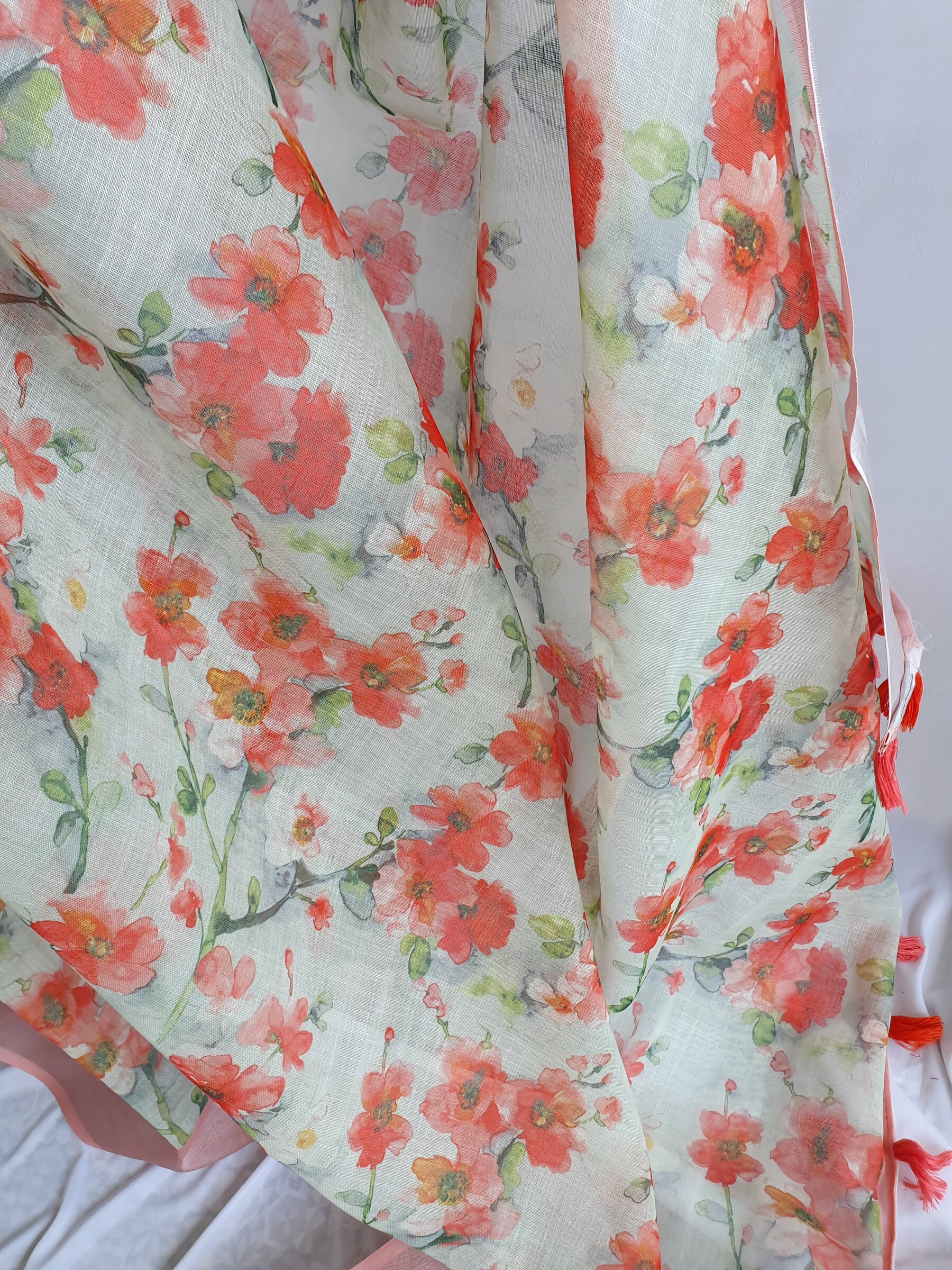 - This is a digital printed saree and it may have stains, smudges and misprints and they are not considered as damages.