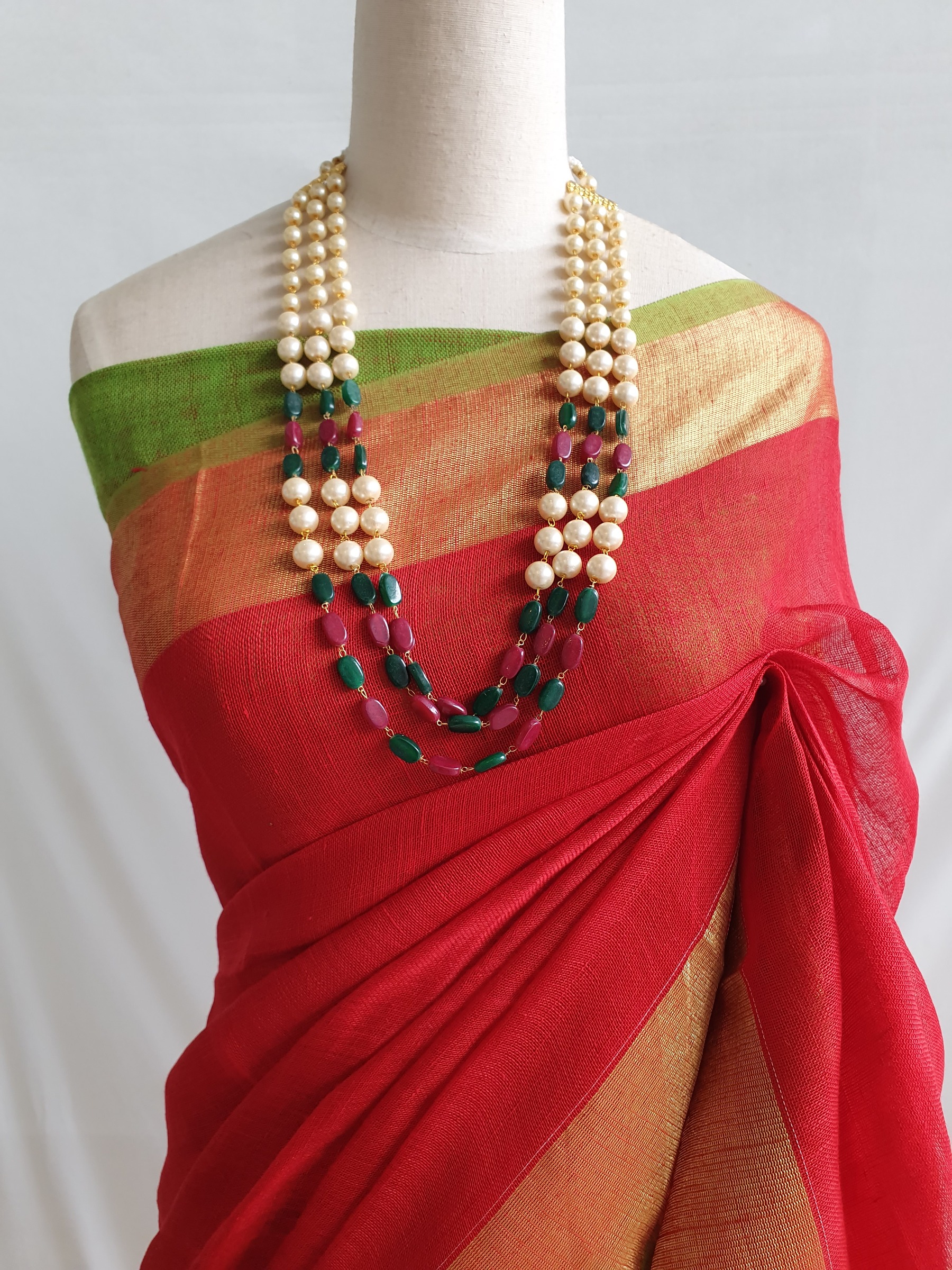 Rose Gold - 3 layered coloured pearls haram(adjustable)