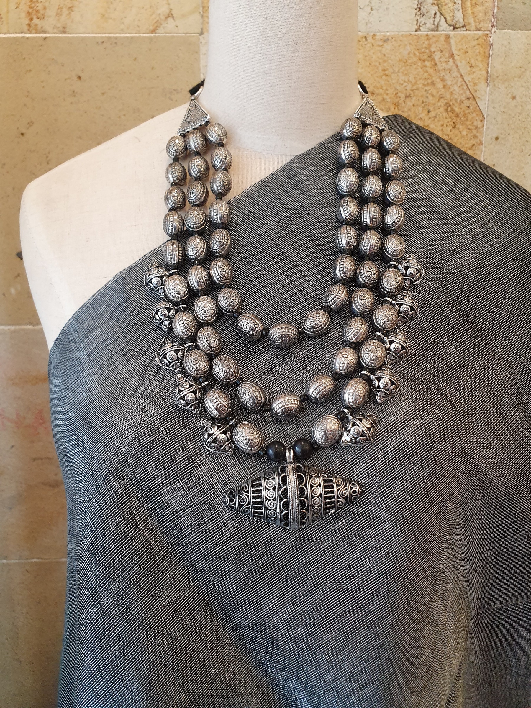 3 layered oxidized silver statement neckpiece with large pendant (with adjustable string).
