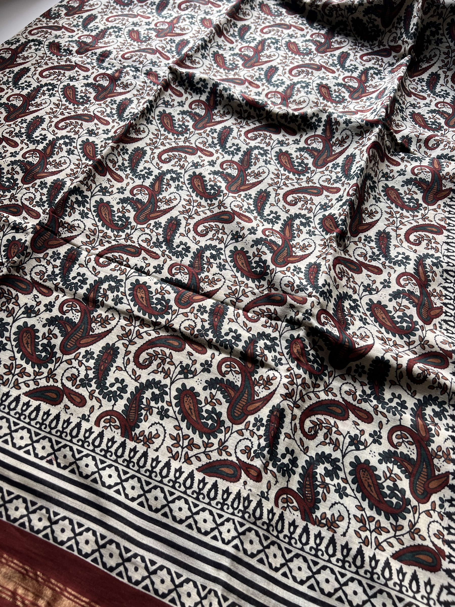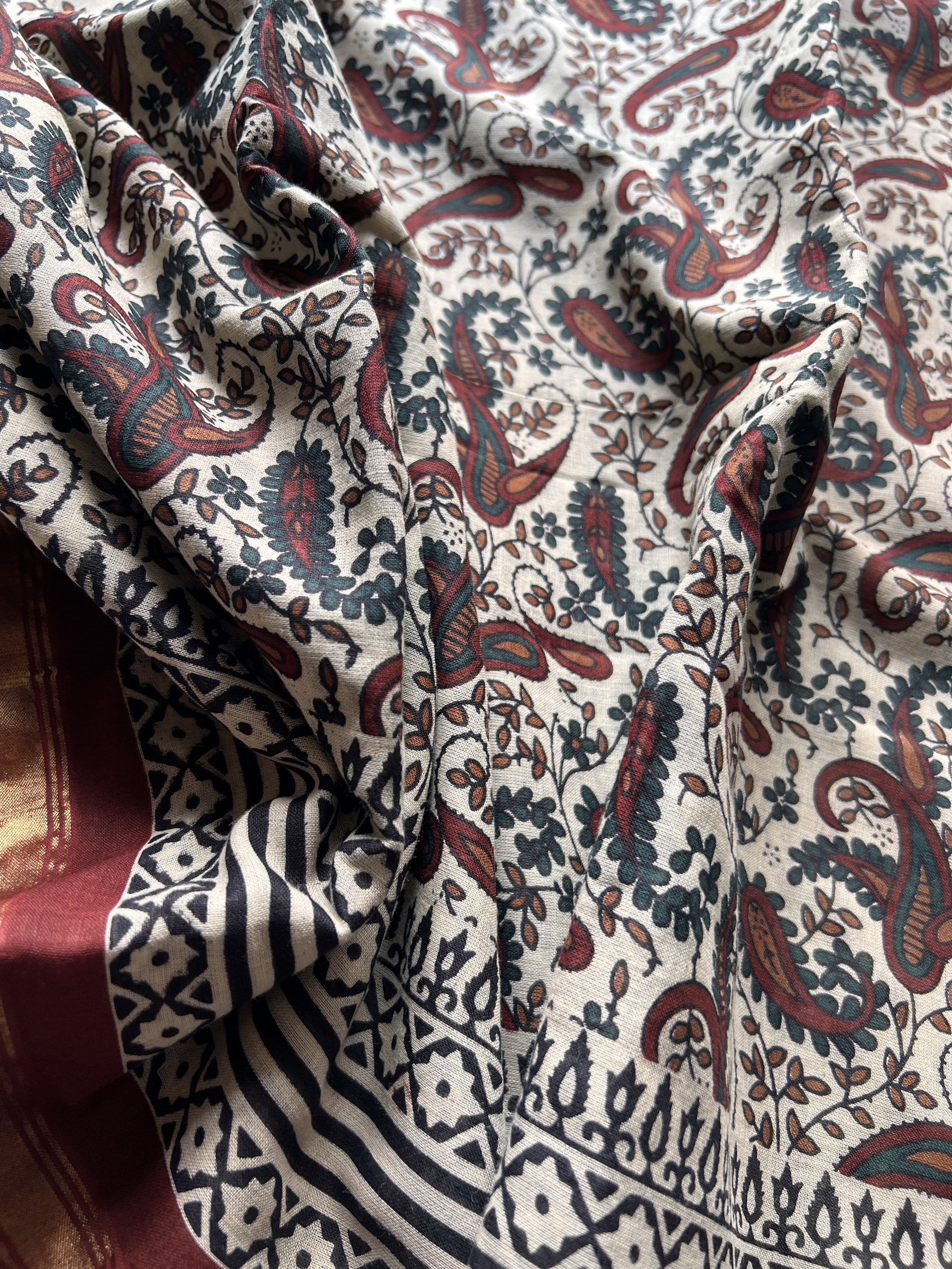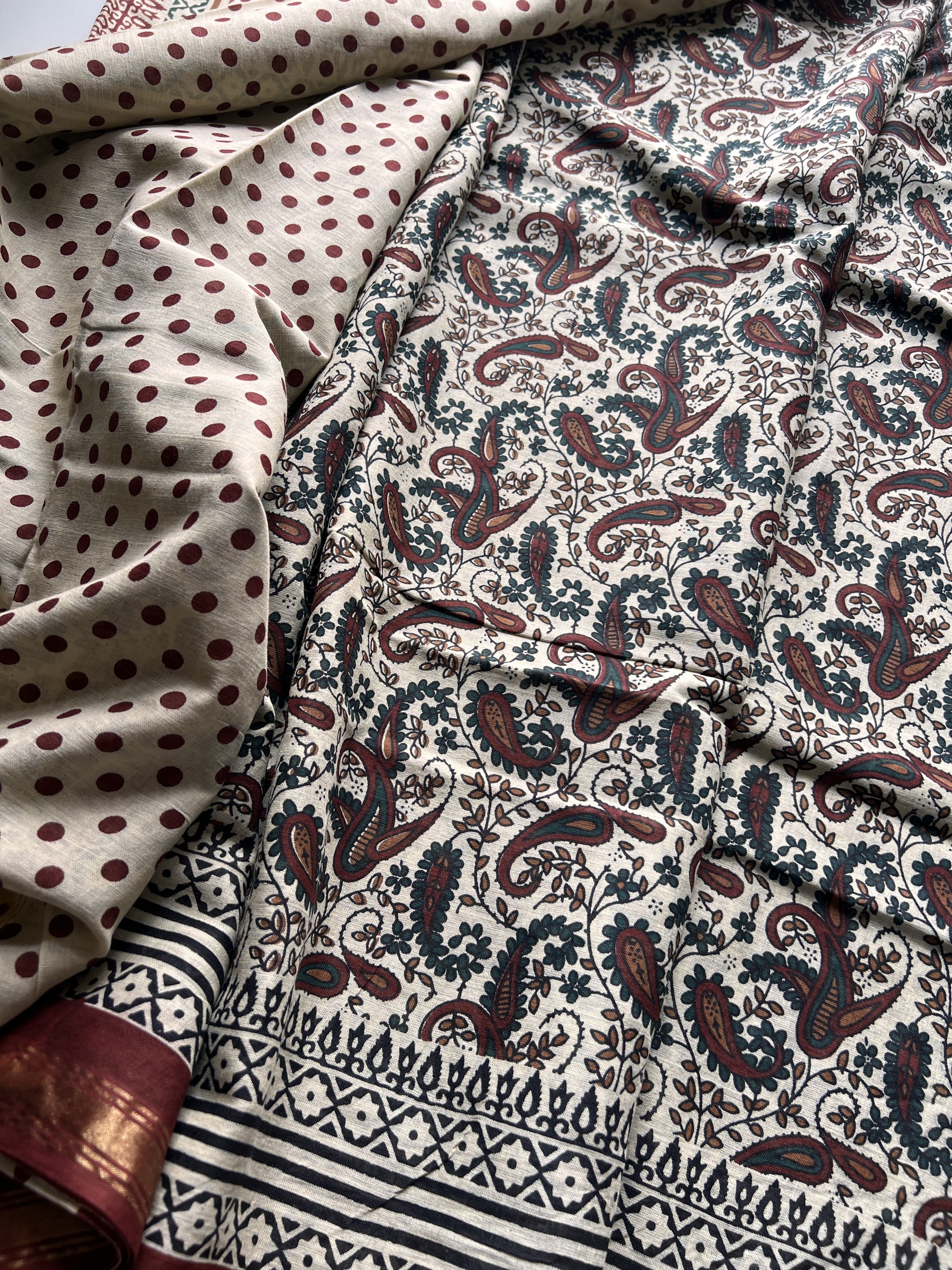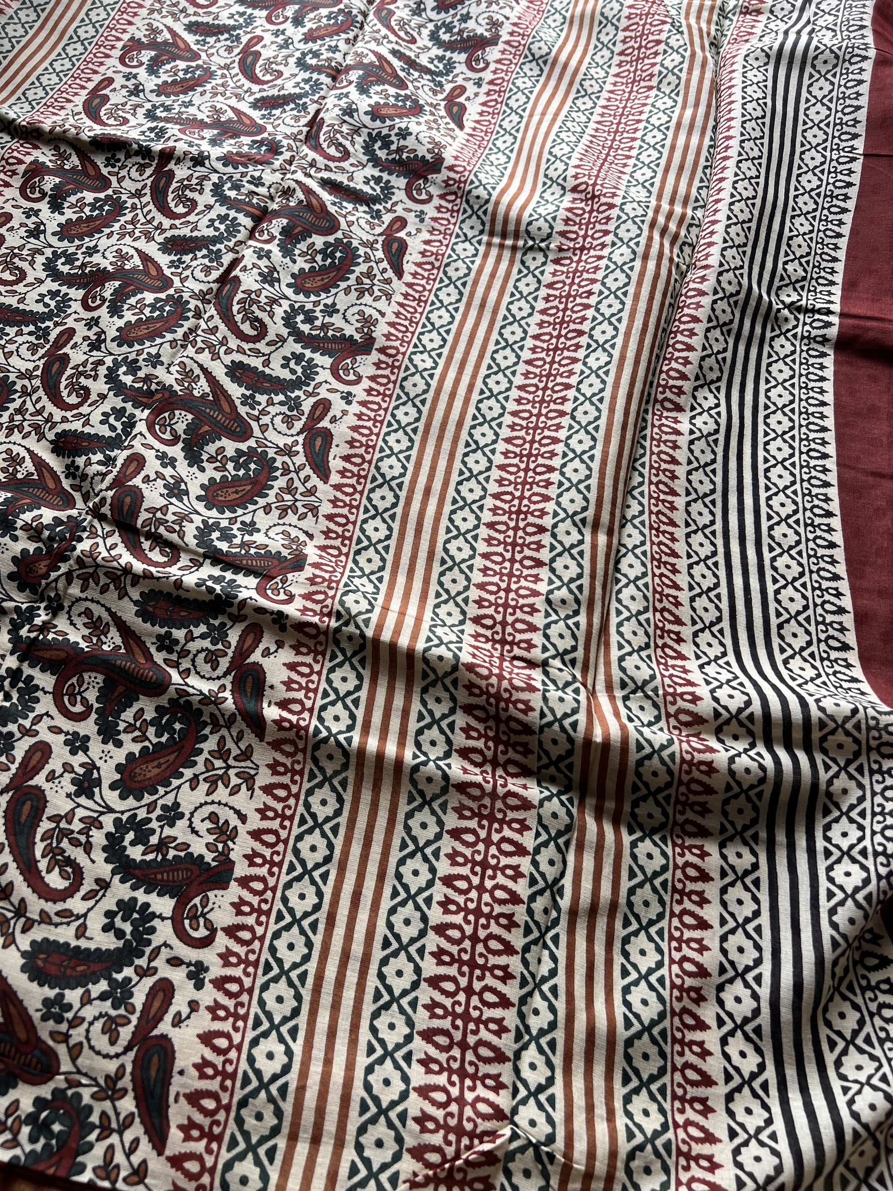 Floral design printed soft cotton saree with attached contrast design blouse material (refer to last picture for blouse design).